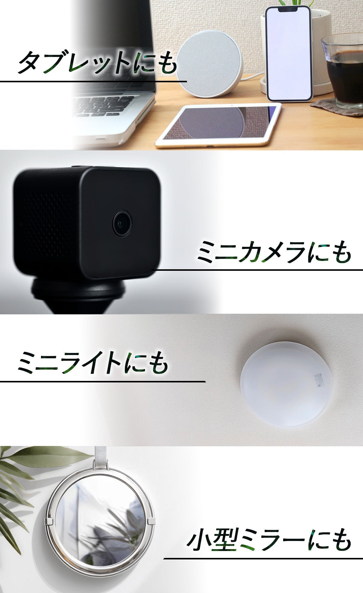 耐荷重量以内で直径46mm以上の平滑面さえあれば、何でも好きなものを取り付け可能です!