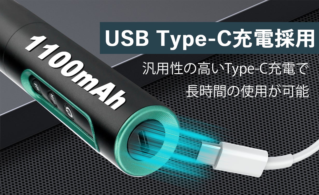 1100mAhのバッテリーは、1度に約3〜4時間の連続使用が可能です。