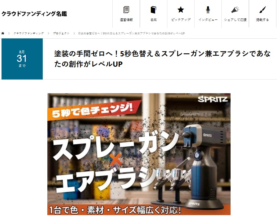 先日、クラウドファンディング名鑑で「SPRITZ」を紹介して頂きました。