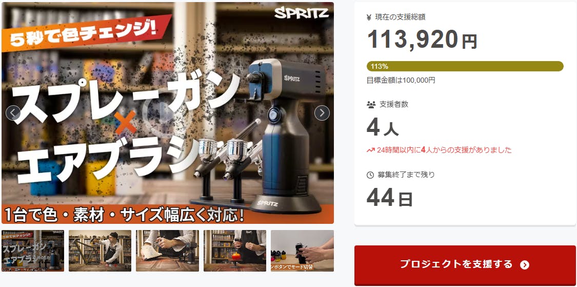 皆様、こんばんは!Bright DIYチームです。先日、クラウドファンディング名鑑で「SPRITZ」を紹介して頂きました。話題:塗装の手間ゼロへ!5秒色替え&スプレーガン兼エアブラシであなたの創作がレベルUP興味がある方、是非下記のリンクからアクセスしてみてください。https://crowdfunding.meikan.org/project/campfire-840955/【レビューの一部抜粋】〈SPRITZの特徴「SPRITZ」はコードレスで手軽に使えるスプレーガンです。ノズルとボトルが簡単に取り外せ、約5秒で色替えが可能。清掃も簡単で、詰まりにくい設計により作業効率が向上します。速乾モード付きで高品質な仕上がりも実現。3段階の噴射モード用途に応じて選べる3つのモードを搭載。レベル1は精密な塗装、レベル2は家具やDIY向け、レベル3は広範囲の塗装に適しています。ライトモードもあり、細部までしっかり確認できます。購入・支援情報ベーシックキットとコンボキットの2種類から選べ、1500mAhバッテリーで2~3時間の連続使用が可能。水性・油性どちらの塗料にも対応し、日本語サポート付きで安心です。詳しくはプロジェクトページへ。〉ご興味のある方はこの機会をお見逃しなく!https://camp-fire.jp/projects/840955/view8月31日まで販売期間は続きますので、ぜひSNSでのシェアや身近な方にもおすすめしていただけると嬉しく思います。#spritz #brightdiyどうぞよろしくお願い致します。BRIGHTチーム