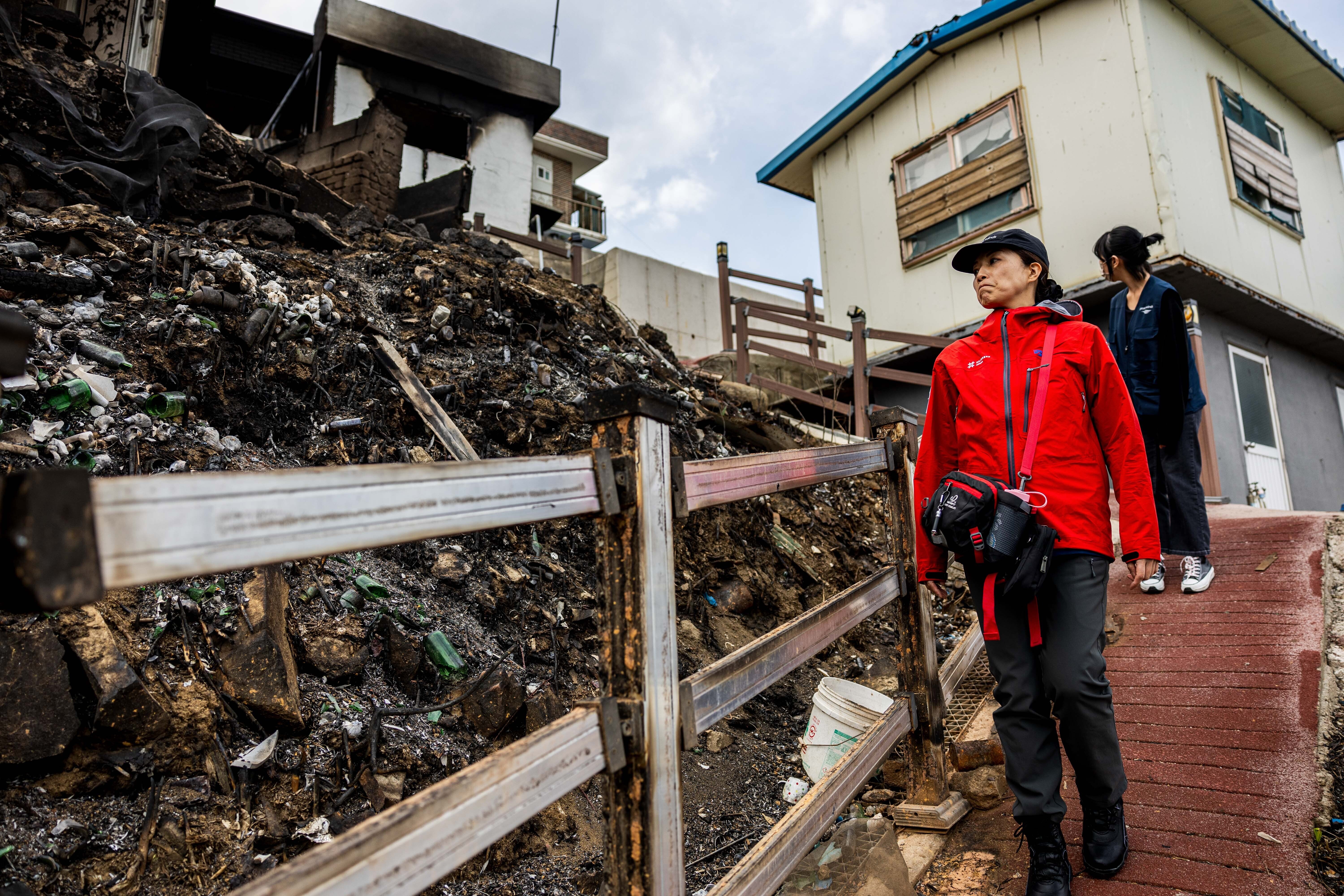 3月28日、日本から派遣された空飛ぶ捜索医療団“ARROWS”の看護師、調整員はソウルで現地チームと合流すると、すぐに被害の激しい慶尚北道 盈徳郡(ヨンドク郡)に移動しました。この日被災地には、久しぶりにまとまった雨が降り、道中、運転する現地スタッフは「あぁ雨だ…本当によかった……」と言葉をもらしたといいます。