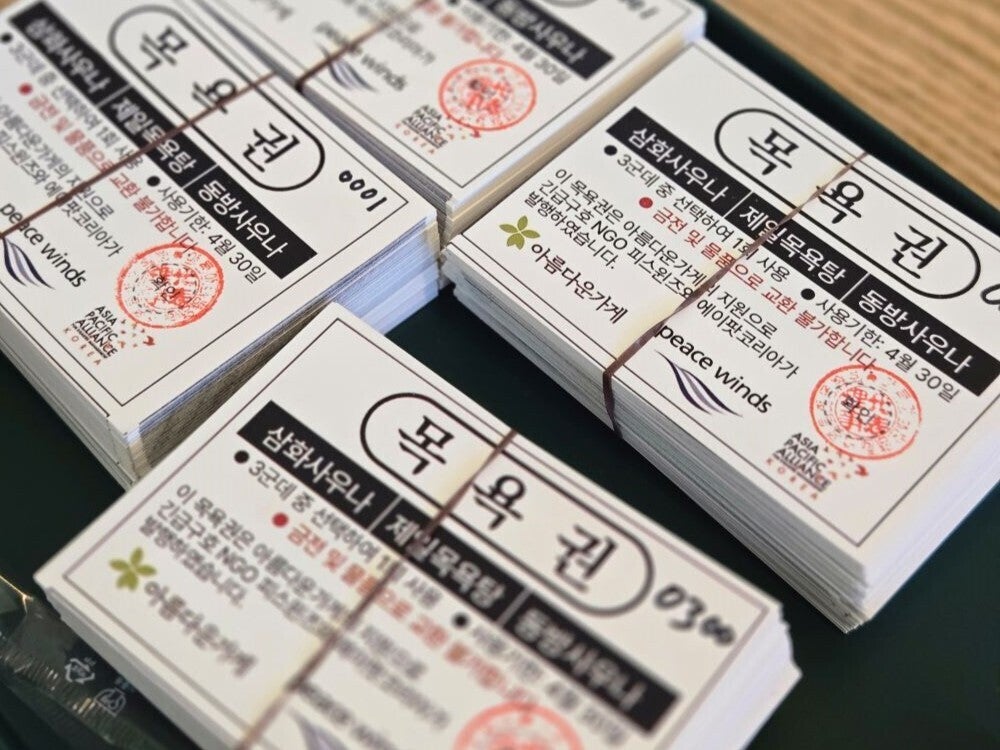 そこでピースウィンズは、市内の銭湯3か所と協力し、避難中の方々に無料で利用できる「入浴券」を配布。さらに、入浴を希望する方のために車を提供し、必要な洗面用具も支援しました。