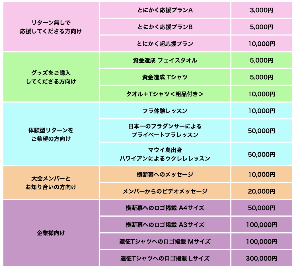 こちらは返礼品がなく、"応援"のみして頂けるプランとなります。