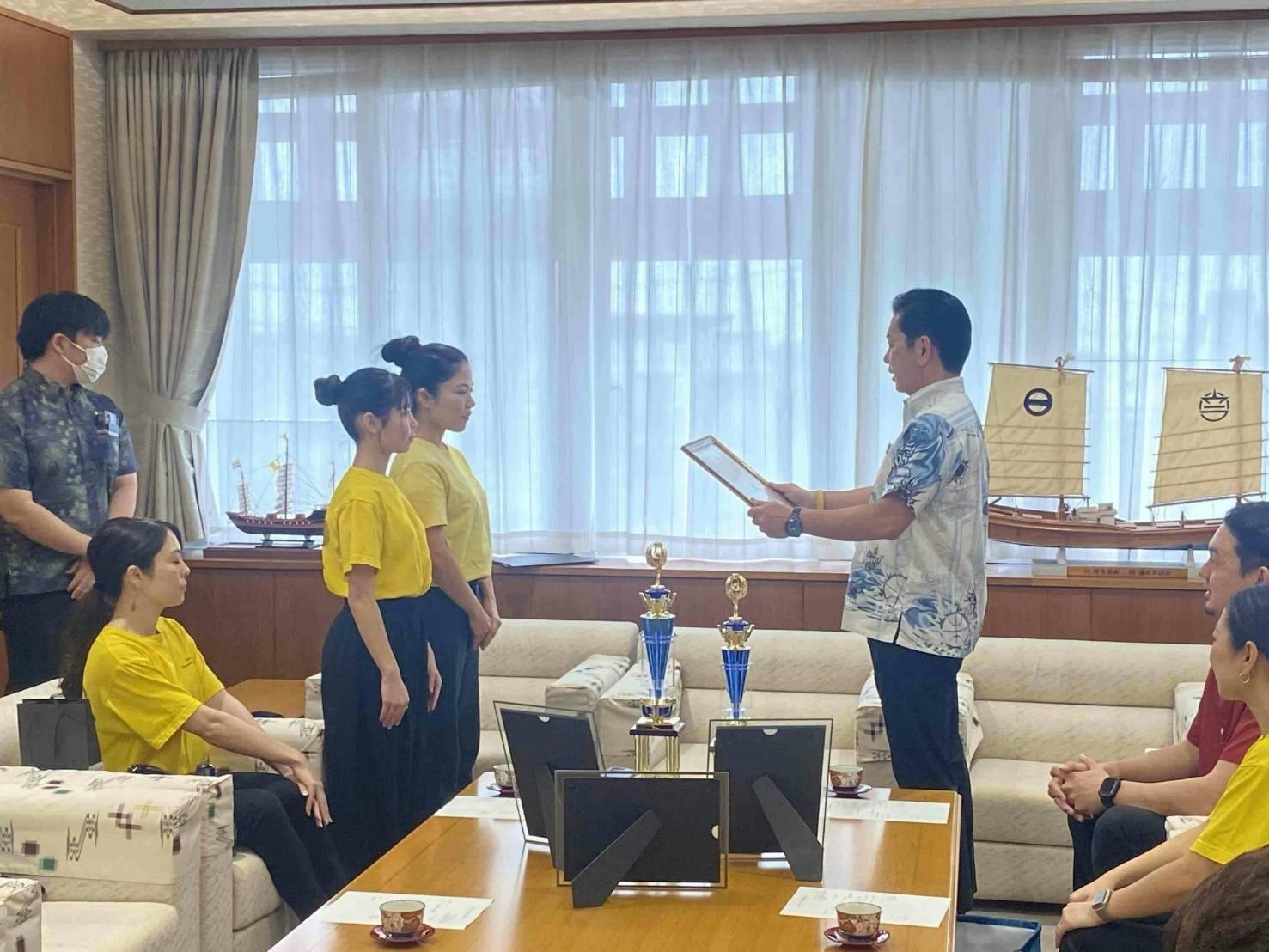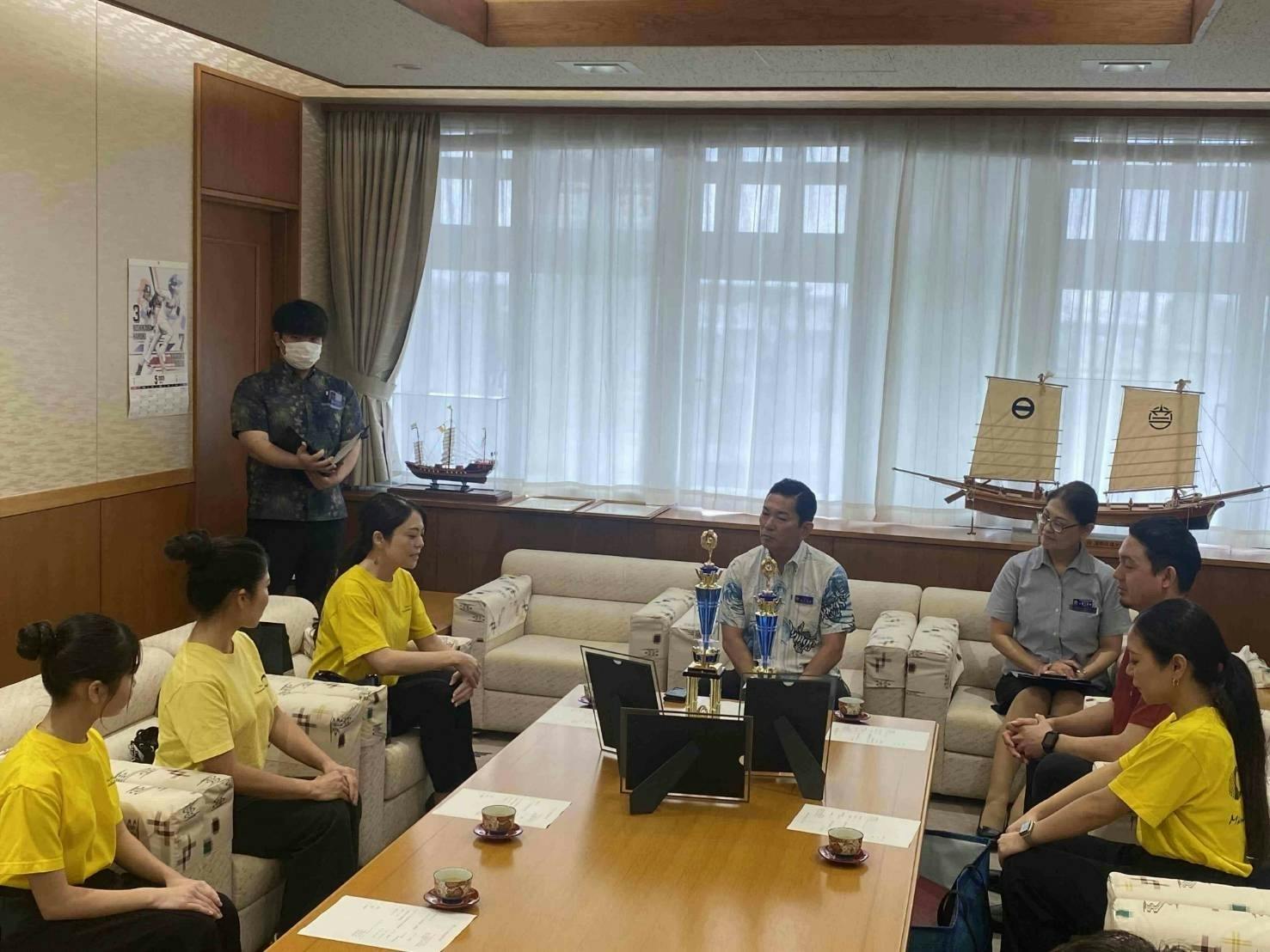 北谷町役場での表敬訪問の様子