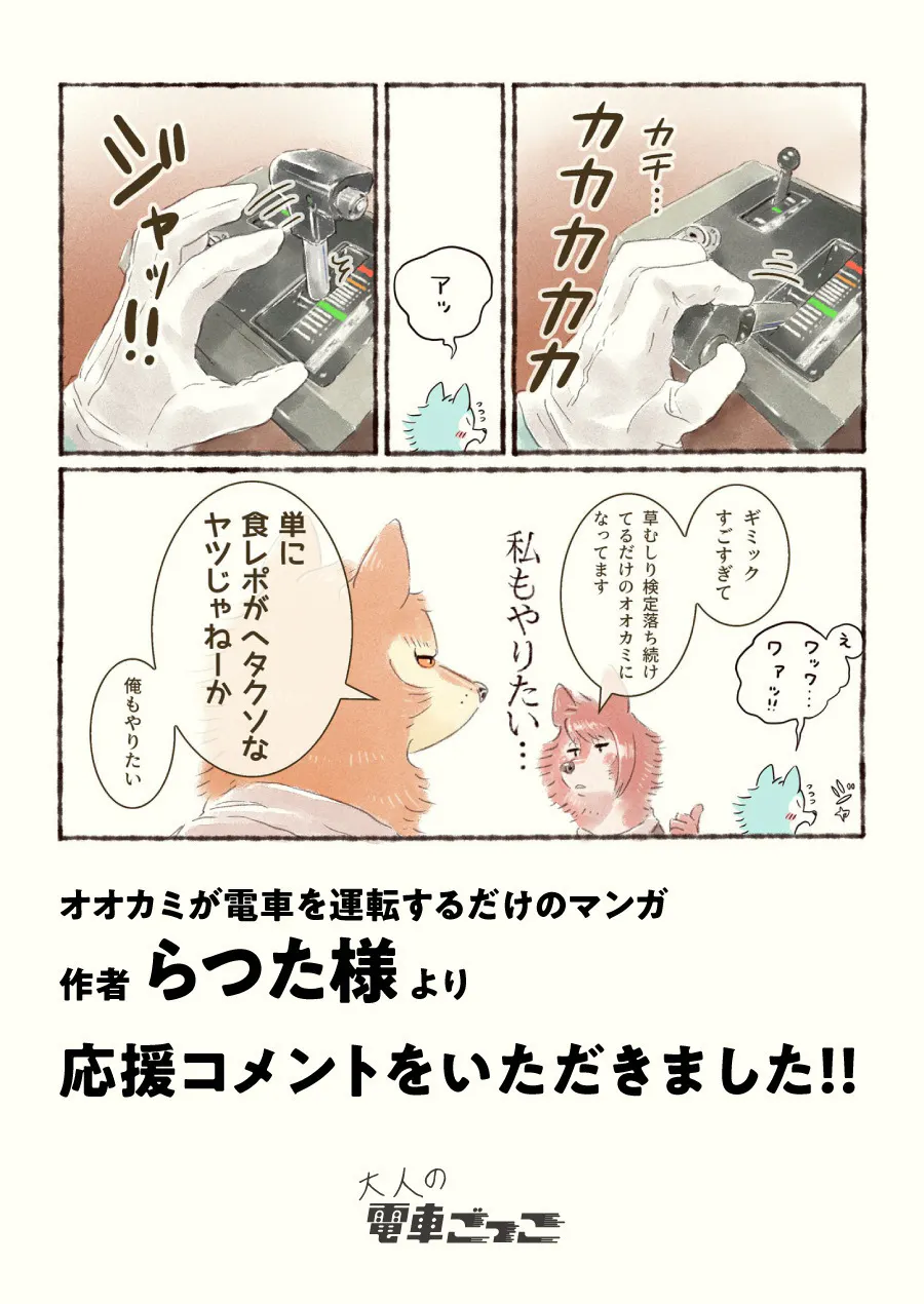 『オオカミが電車を運転するだけの漫画』の作者・らつた様より、熱いエールを頂戴しました!