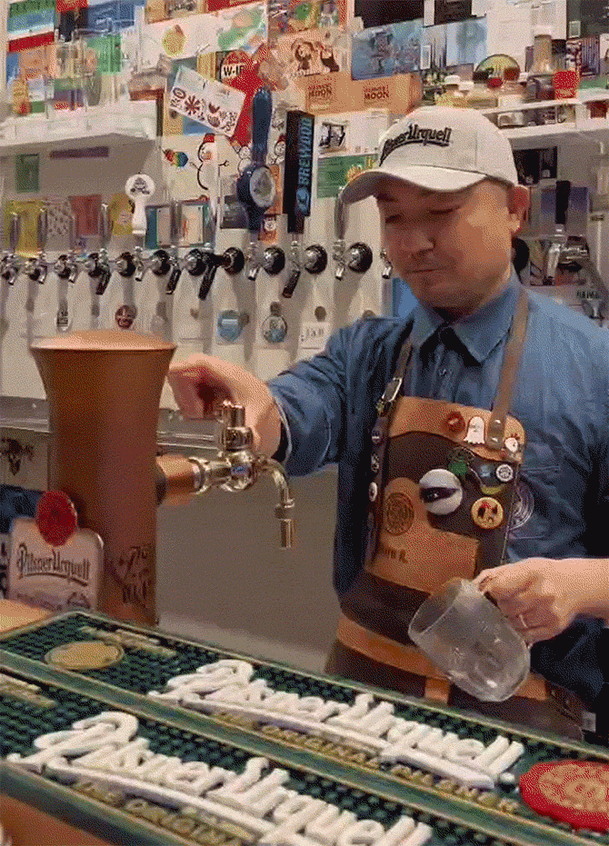 ビールの味は「注ぎ方で決まる」と言われるほど繊細で、ピルスナーウルケルには「タップスター」と呼ばれる専門資格取得者のみが提供できる特別な注ぎ方があります。