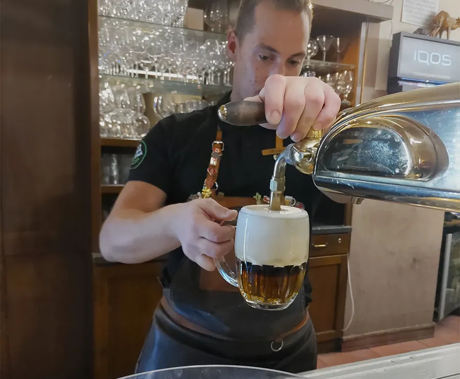 ビールの味は「注ぎ方で決まる」と言われるほど繊細で、ピルスナーウルケルには「タップスター」と呼ばれる専門資格取得者のみが提供できる特別な注ぎ方があります。