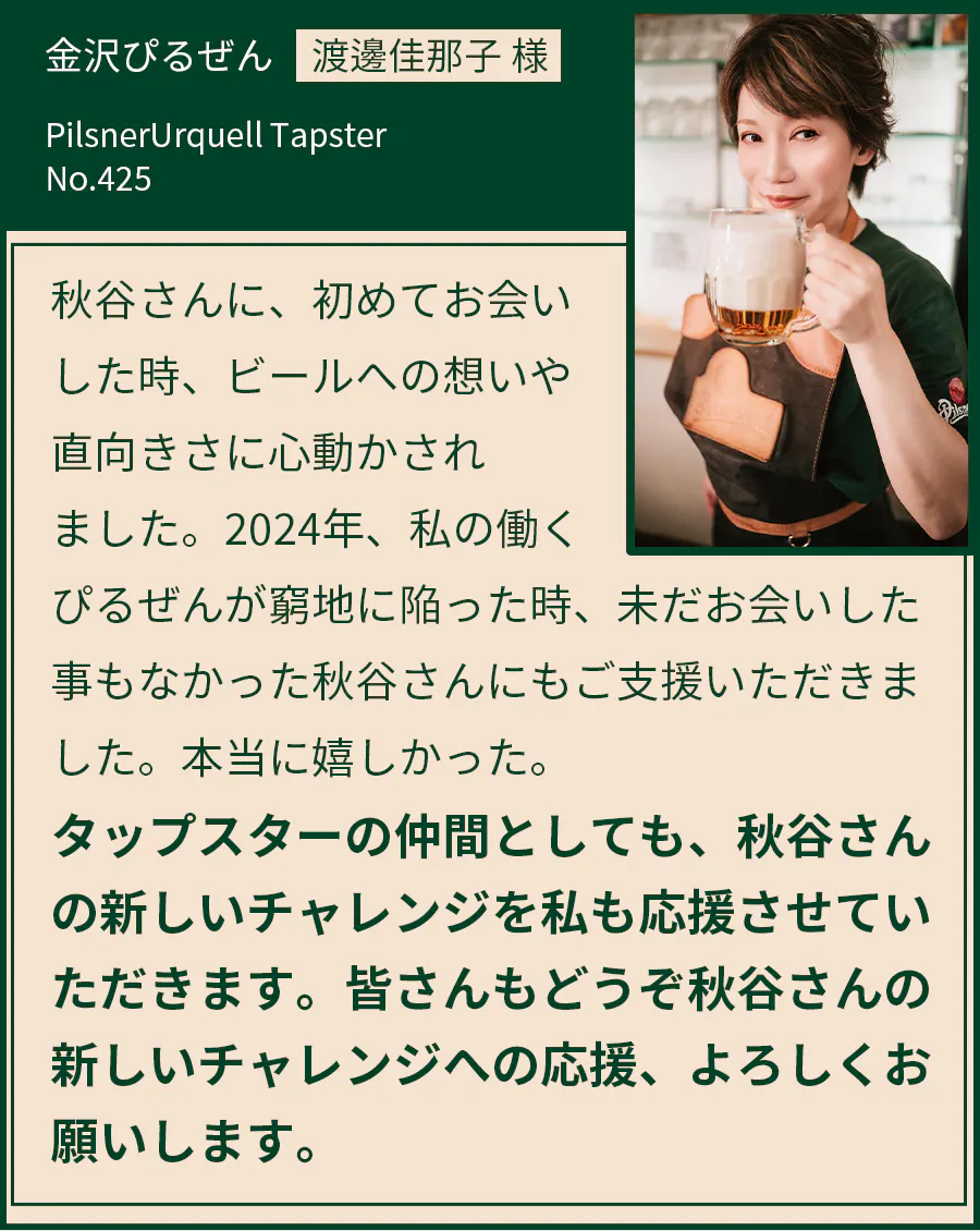 これまでの経験を活かし、日本全国のビールファンと繋がりながら、極上のビール体験を提供していきたいです。