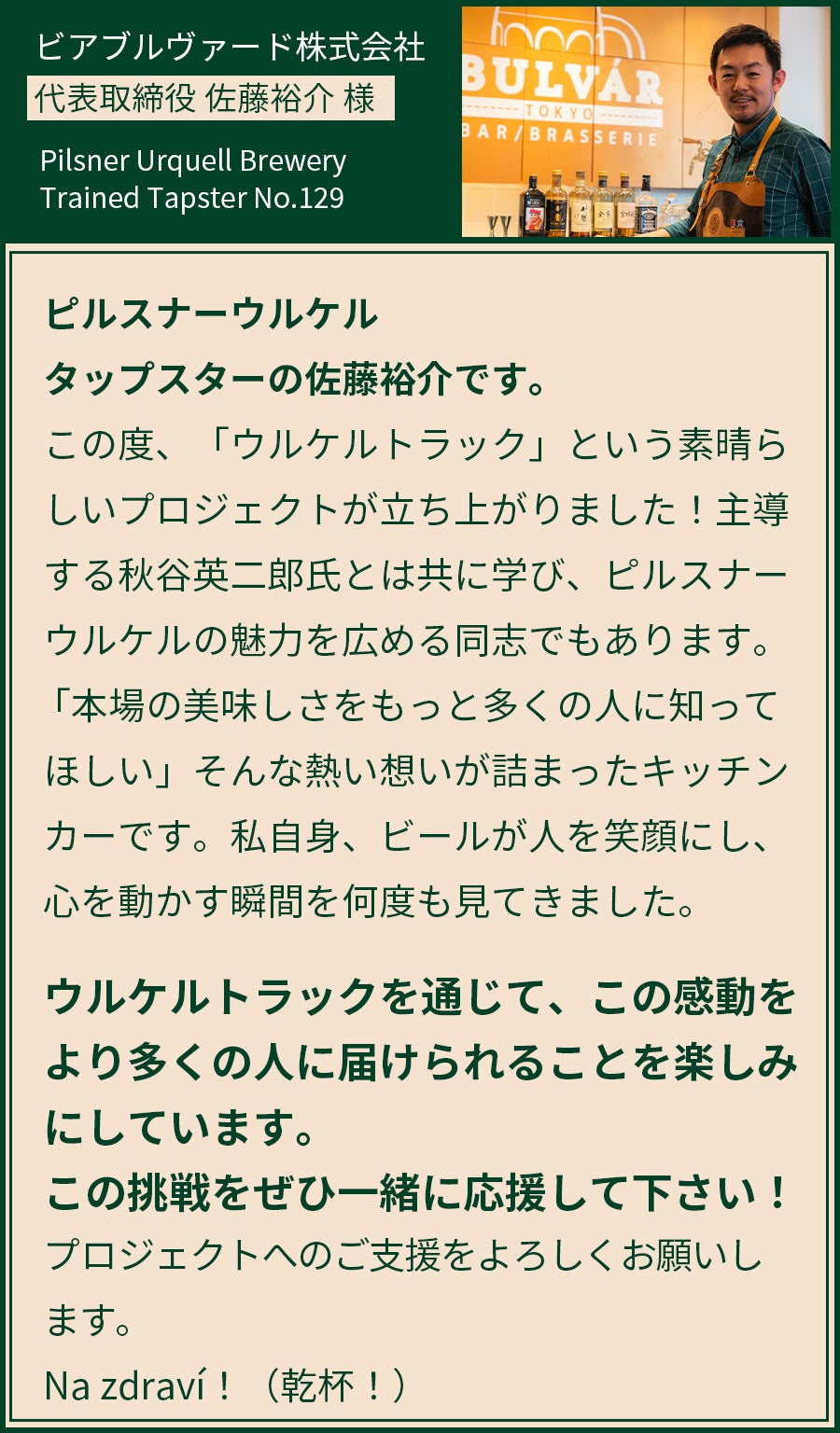 ウルケルトラックを通じて、本場チェコの「ビールを味わう文化」を日本に広め、ビールの奥深さを伝えます。