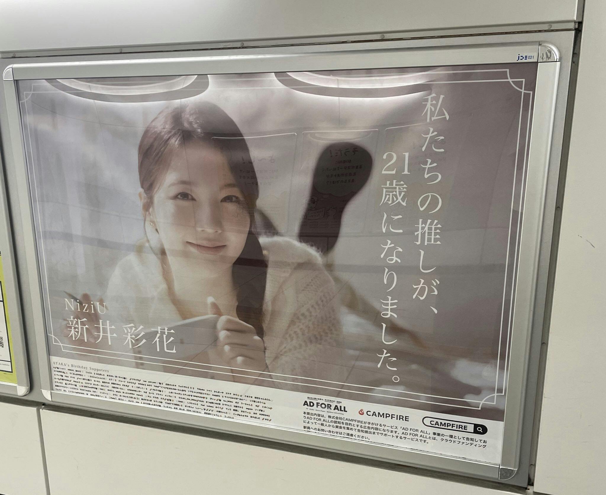 ※応援広告・誕生日広告は、アイドルや歌手の誕生日/記念日をファンが盛大にお祝いするという韓国から始まった文化です。現在では日本のアイドルグループやアニメキャラクターなどの記念日を、駅広告ポスターやビジョン、カフェコラボイベント等でお祝いする文化が日本でも広まっています。