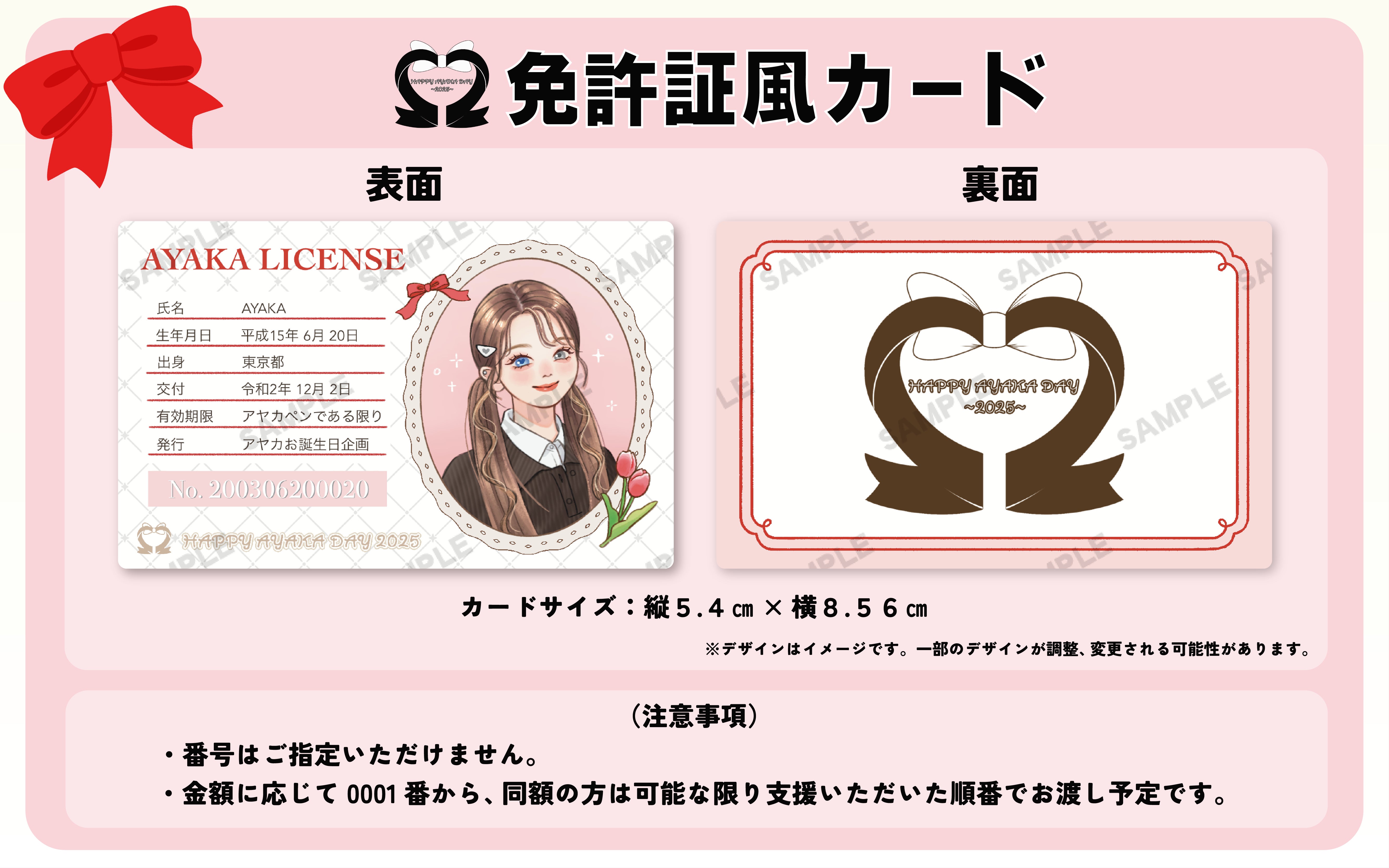 ※支援金額に応じて0001番よりお渡しする予定です。