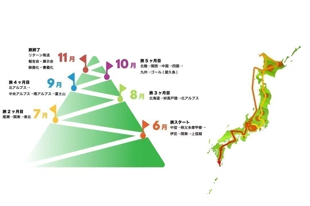 また、山行についてはダイジェスト版としてエリア毎に長編動画としてYouTubeを通じて配信予定です。どのような行程で旅を進めているのか気になる方にその詳細を届けます。