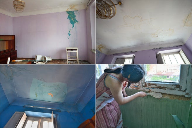 壁や天井のシミ、雨漏りや損傷がひどく、塗装や修繕が必要