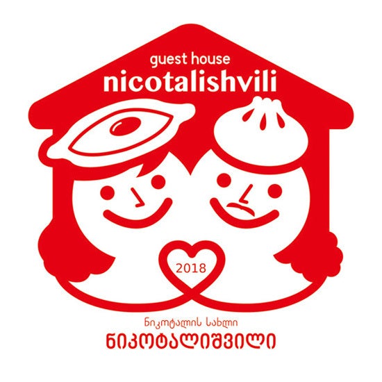 当ゲストハウス「nicotalishvili」の屋号は、私たちのニックネームである「nico」と「Tally」、そしてジョージアのファミリーネームで最も多い「ーshvili」を組み合わせて考案しました。【nicoとTallyの家】というイメージです。ロゴマークの私たちの頭上に、ジョージアの国民食である「ハチャプリ」と「ヒンカリ」をかわいく載せてみました。日本とジョージアのフラッグカラーである赤と白を用い、両国間の国際交流もさらに深い繋がりを築けるようにとの願いを込めました。