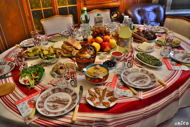 ワインが出たら「スプラ」を忘れてはいけません。日本でいう宴会や飲み会のようなもので、祝い事や客人をもてなす時の伝統文化です。客人にはたくさんの料理とワインやチャチャ(蒸留酒)が振る舞われ、時には音楽や踊りで歓待されます。乾杯前の挨拶と会を取り仕切る、「タマダ」と呼ばれる重要な役割を担う人が選ばれます。人生経験豊富で皆に尊敬され酒に強く、詩心やユーモアセンスがあり演説が得意など、雰囲気作りが上手な人が良いタマダと言われます。タマダは乾杯をする前に口上を述べます。たとえば「神様に乾杯!」「両親に乾杯!」「ご先祖さまに乾杯!」「ジョージアと日本の友好に乾杯!」と。乾杯したら一気に飲み干し、またグラスにお酒が注がれます。タマダは参加者が楽しめるように話題を作り、時にはポエムを取り入れます。タマダの口上を聞くだけで、つい感動して目頭が熱くなってしまうことも度々。きっとタマダや会の参加者の一体感だったり、「おもてなし」の精神が伝わってくるからなのでしょう。彼らの気持ちをありがたく頂戴し「ガウマルジョス(Gaumarjos)」と乾杯しましょう!杯を交わすうちに、心の距離もどんどん近づいていくでしょう。