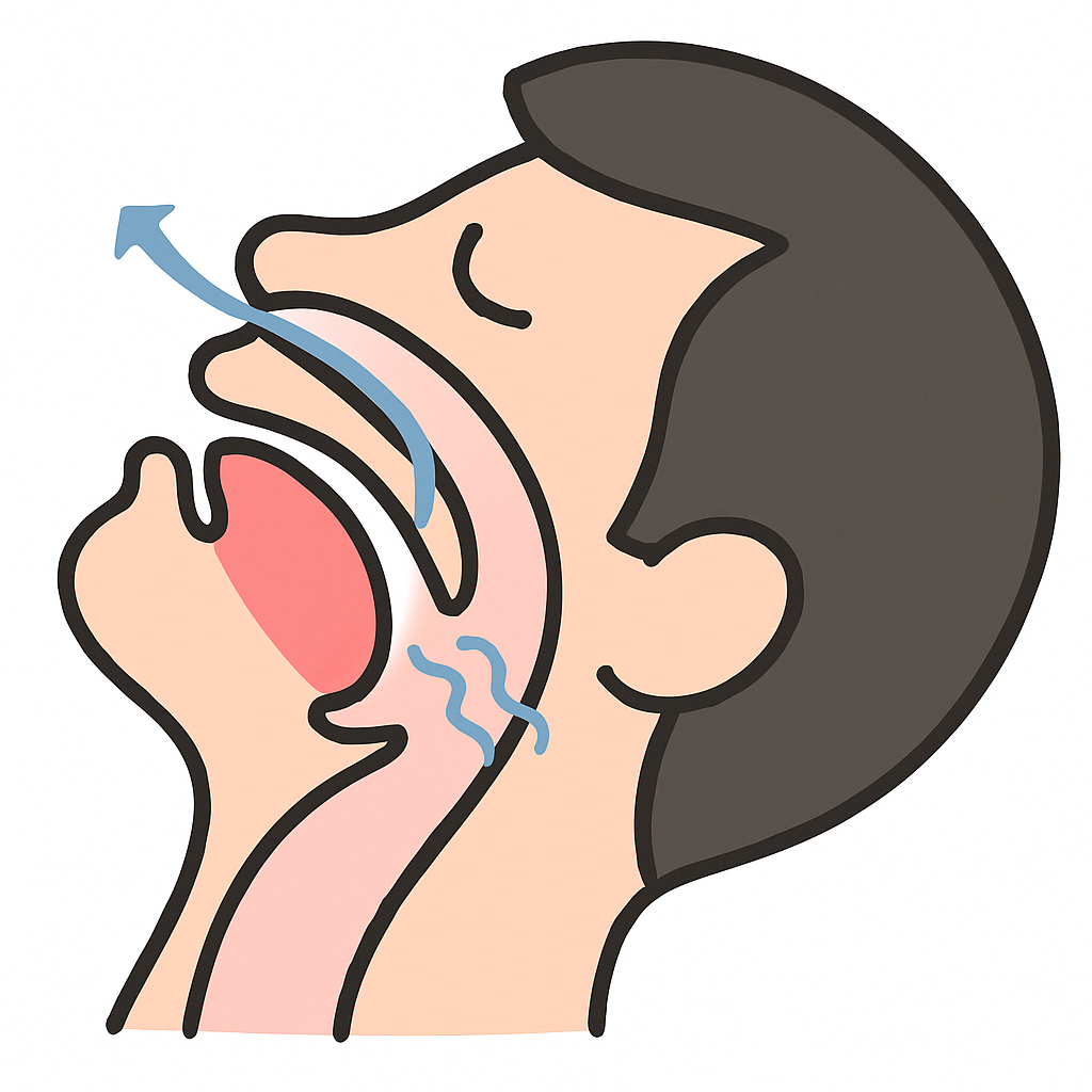 の主な原因のひとつが、「口呼吸によって喉奥の軟部組織が振動してしまうこと」です。口を開けた状態での呼吸は、空気の流れが不安定になり、舌や軟口蓋、喉周辺の組織が共鳴して音を発生させやすくなります。