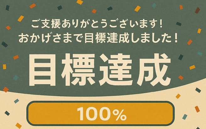 皆さまの温かいご支援のおかげで、プロジェクトは無事に目標金額を達成いたしました!本当にありがとうございます!
