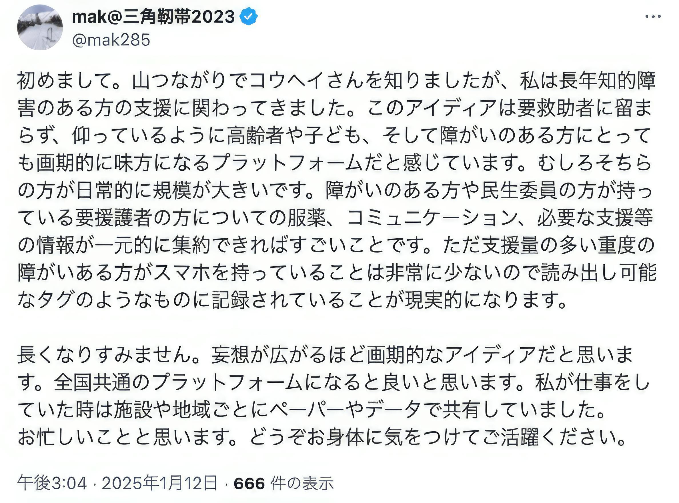 「LifesaveIDで山岳遭難の命を守る新時代の安全を共に!応援してます!」