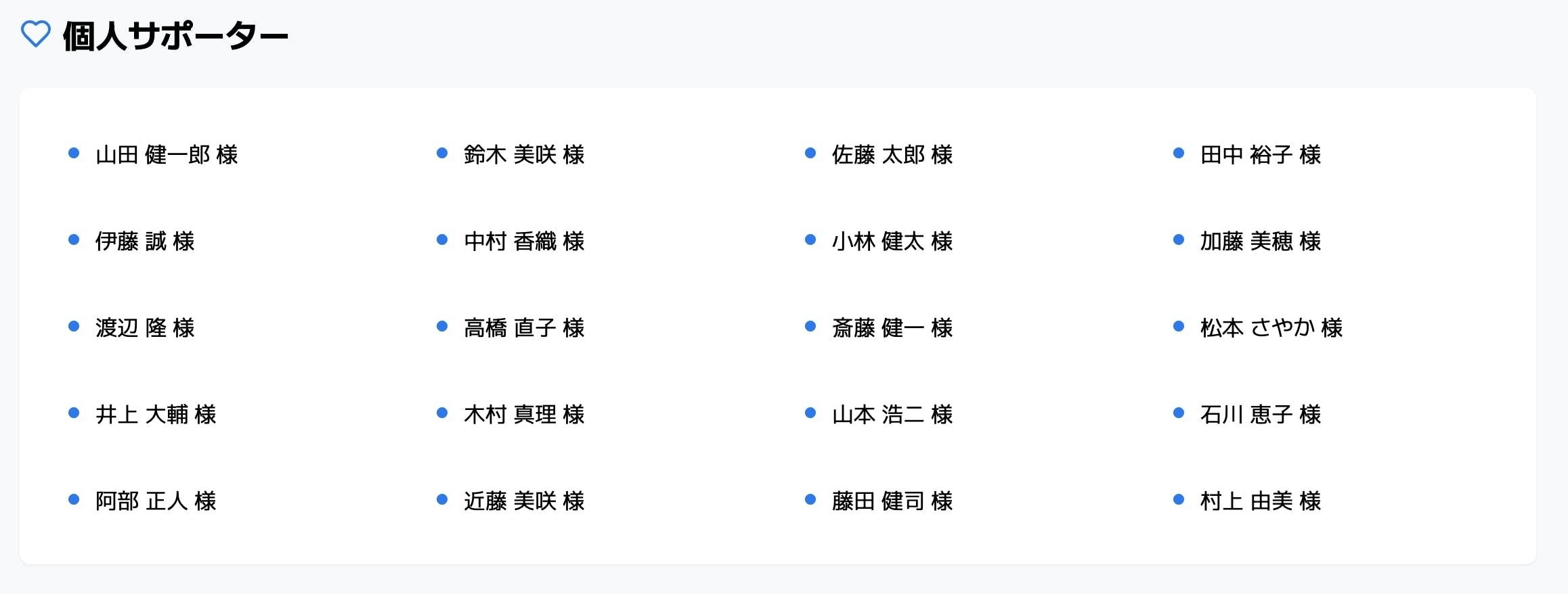 その他には、ご支援への感謝の気持ちを込めて、ご支援者様のお名前やロゴ・バナーをサイズによってプラチナスポンサーもしくはゴールドスポンサーとしてLifesave ID™サービスウェブサイト内で掲載させていただくリターンもご提供いたします。