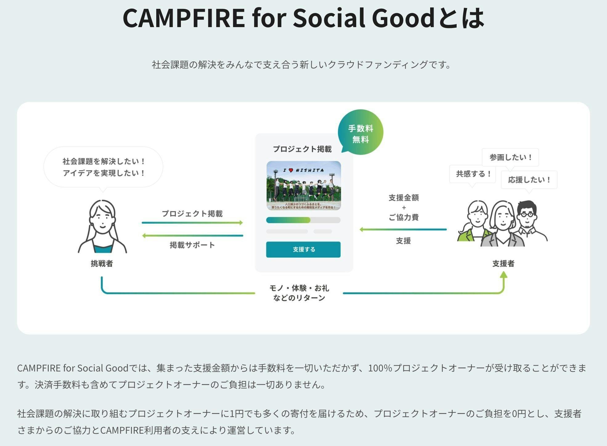 このプロジェクトは、CAMPFIRE for Social Goodカテゴリーの審査に合格し、ソーシャルグッドプロジェクトとして認定されています。