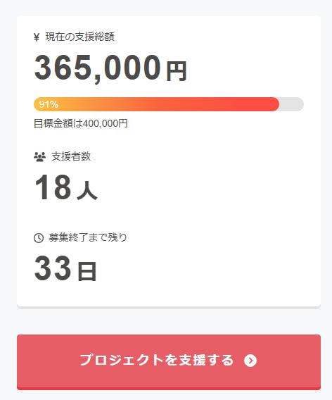 5月8日にクラウドファンディングをスタートしてから、たくさんの温かいご支援をいただき、開始3日目にはゴールの40万円目前となる365,000円まで到達することができました。本当にありがとうございます!皆さまの応援やお力添えに、心より感謝しております。