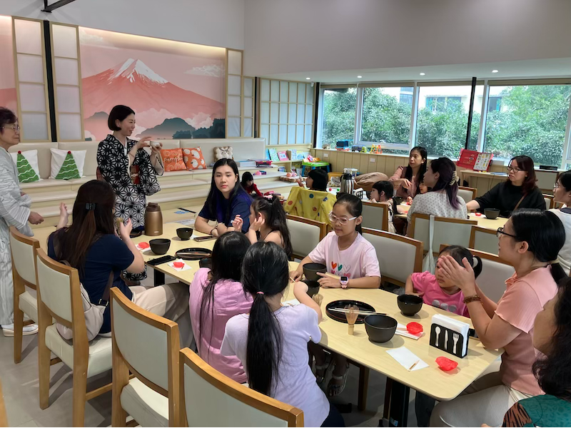 2025年4月14日:ハノイの日系幼稚園にて茶道体験ワークショップ実施(子供・先生向け)