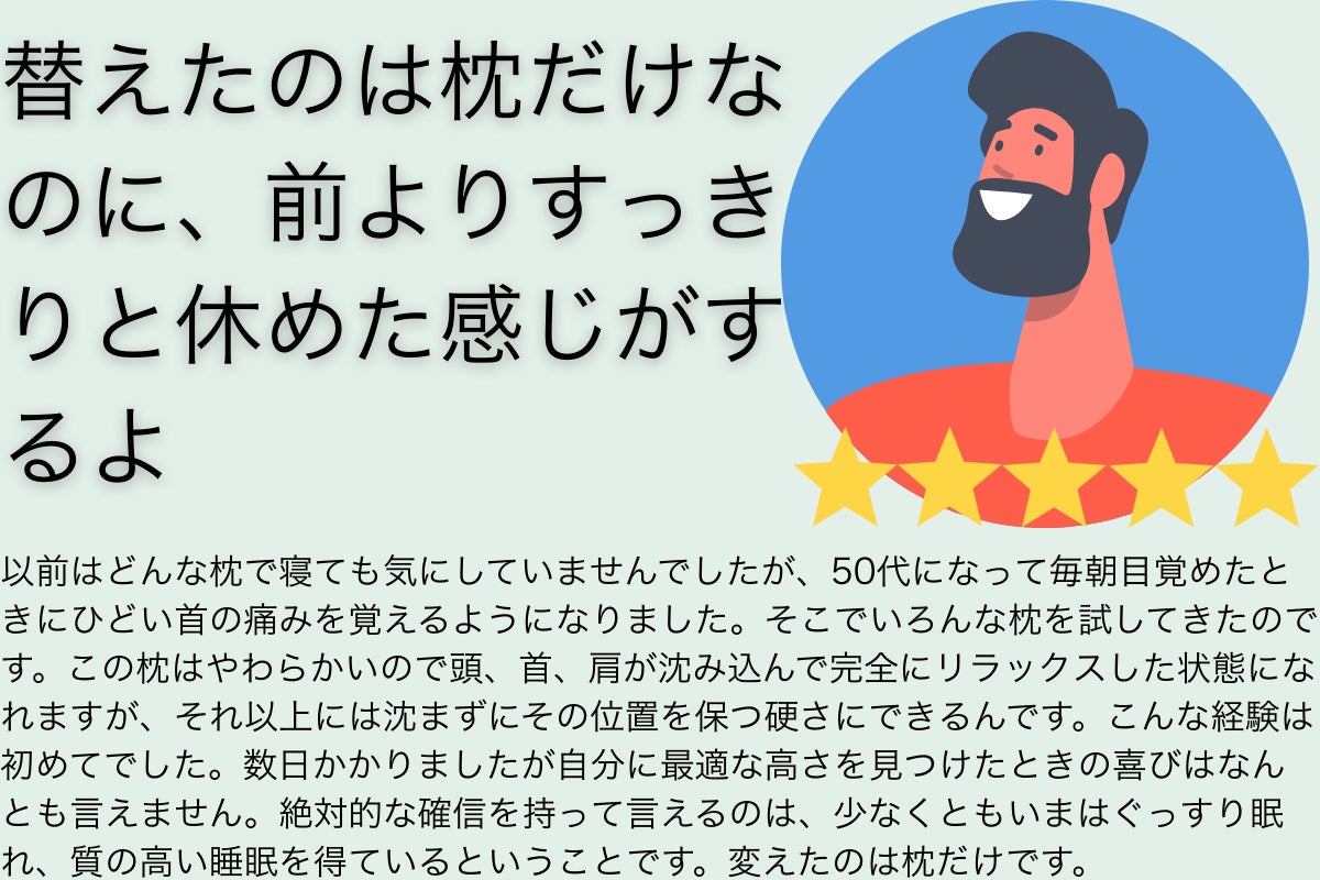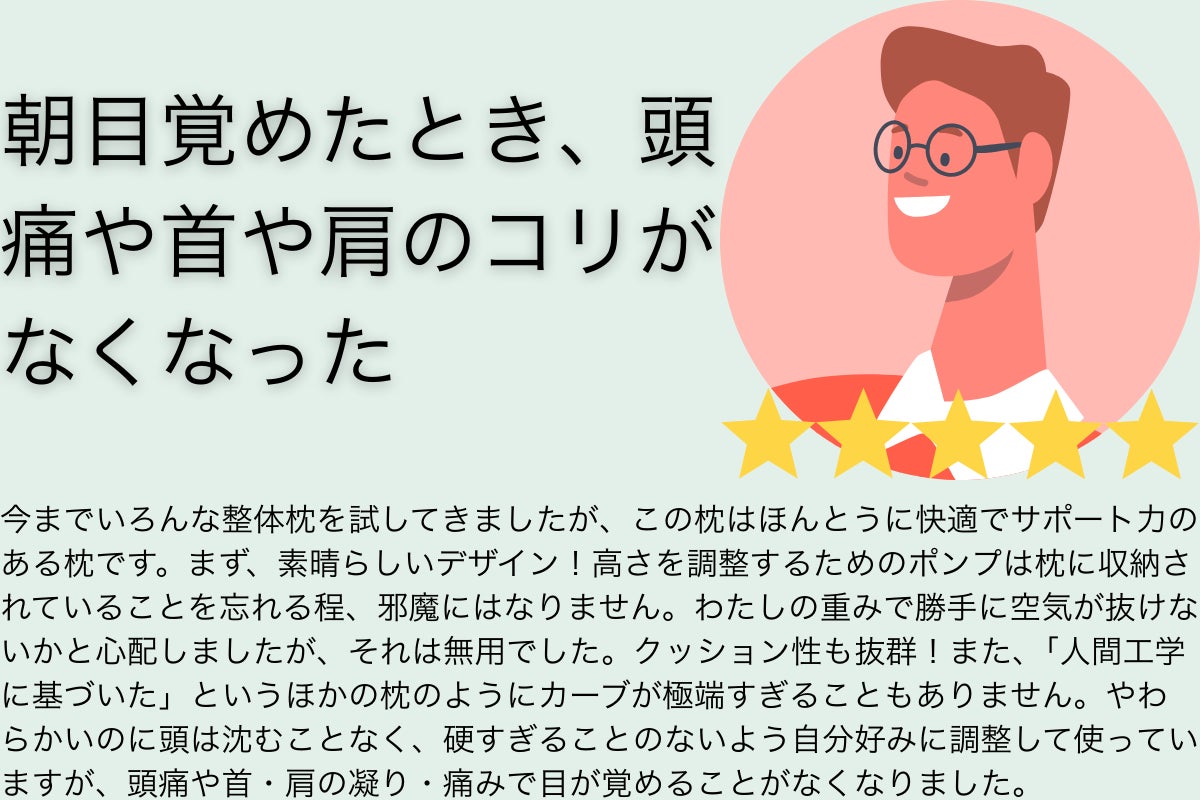 枕の高さが合わないと、睡眠時間が十分でも疲れがとれなかったり、肩こりが増したりします。