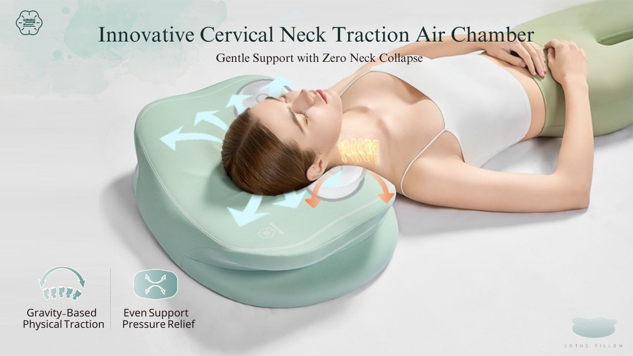 蓮の葉曲線で首を根本からあずけることができます。頸椎(けいつい)に負担をかけず、頭と首をゆるやかにホールドします。