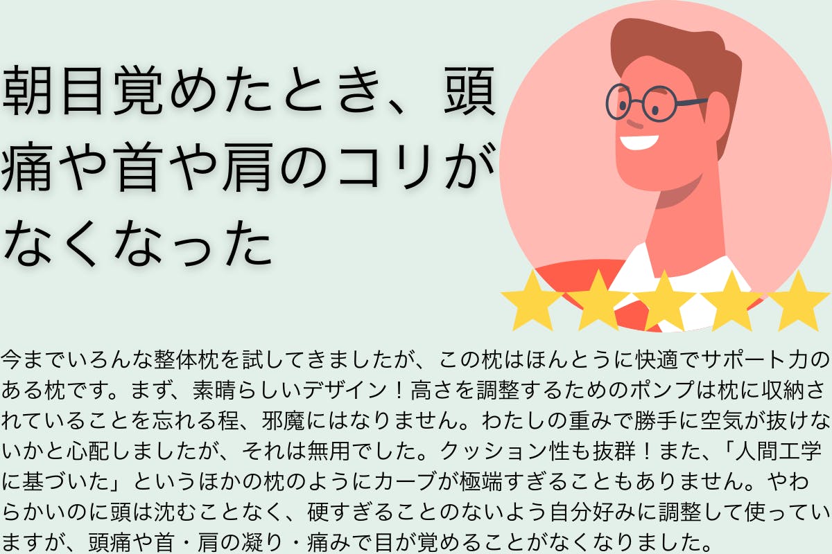 それにより頸椎に負担がかかることを防ぎ、肩こり・頭痛の軽減、安眠を助けます。