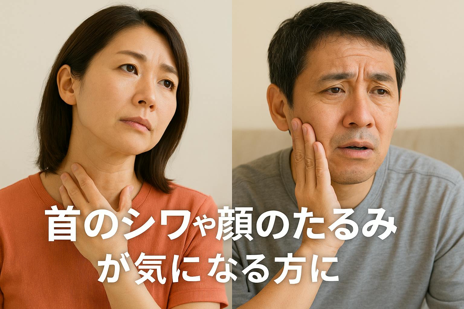 スマホ首はどうやら「首のシワ」や「顔まわりのたるみ」にも関係しているようです。