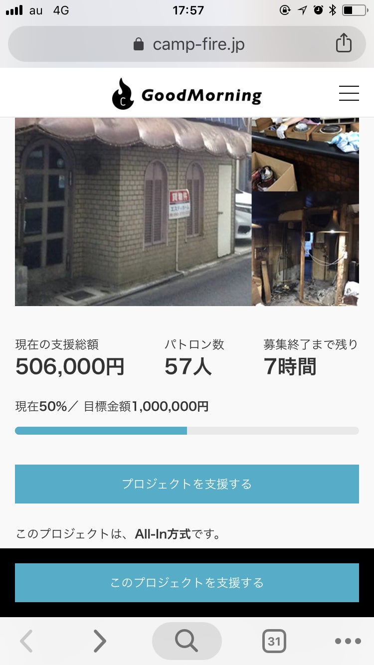 ラスト7時間!50%達成しました!