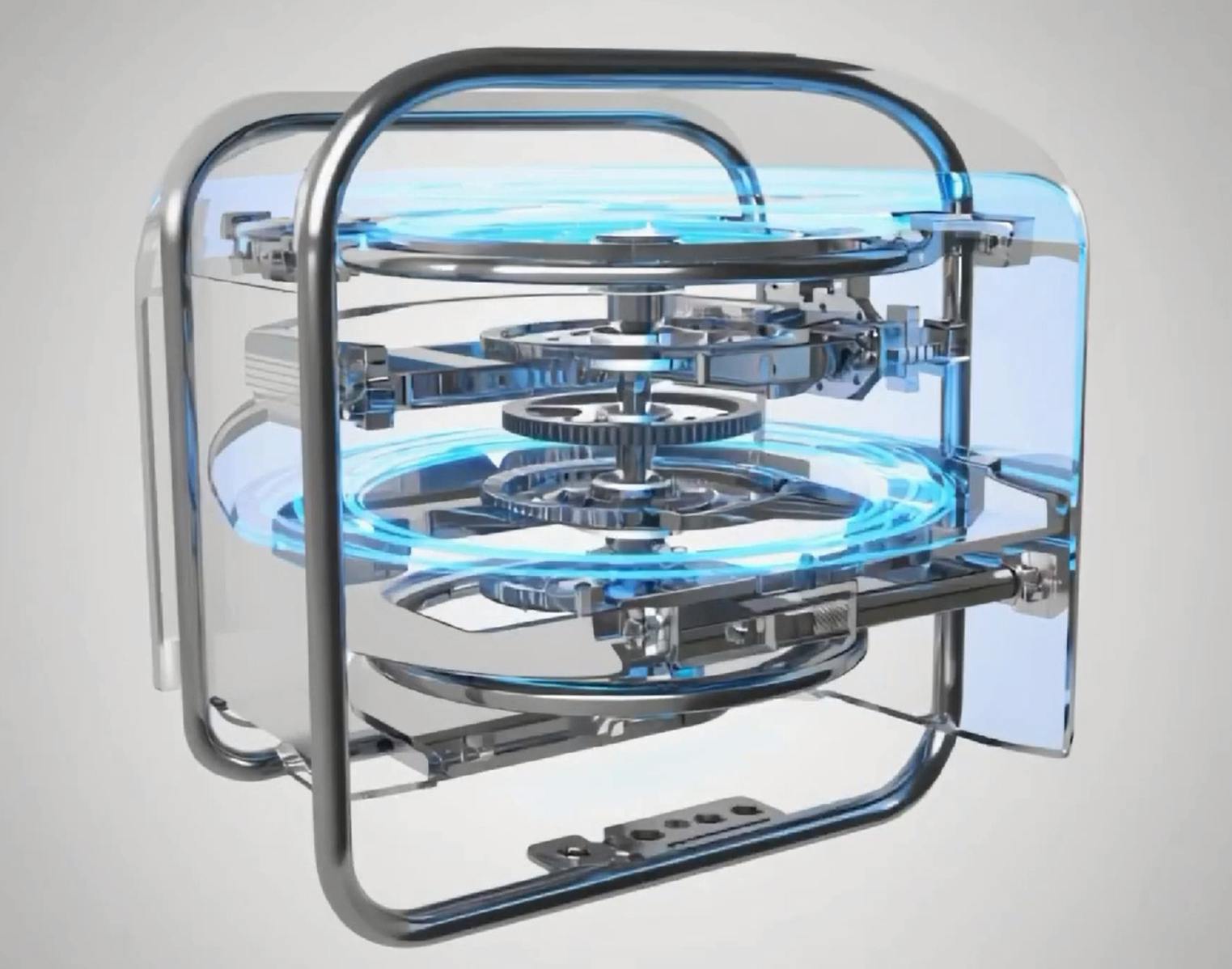 ZeroFluxは「磁気浮上+非接触式回転構造」による全く新しい駆動力ユニットです。従来の回転型モーターではなく、永久磁石で浮上した駆動体が遠心力により安定した横回転を維持し、その回転を直接、三相永久磁石同期発電ユニット(PMSG)で電力に変換します。