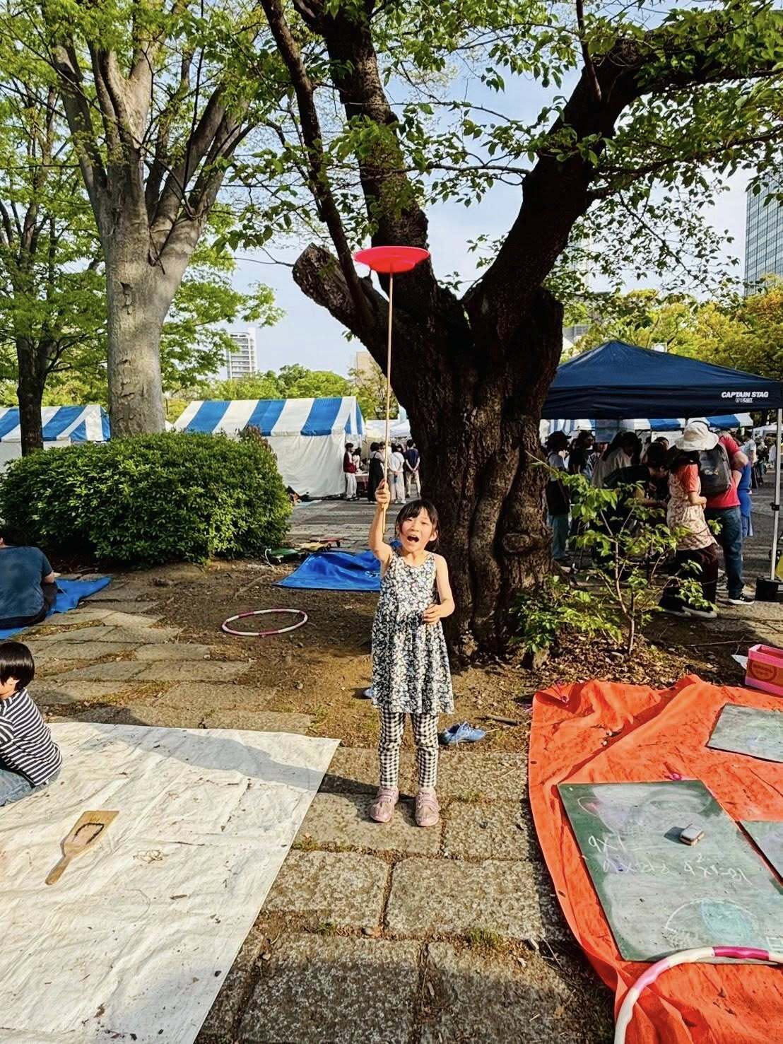 さらに、プレーカーで参戦してくださった「プレーワーク世田谷」さんの遊び場では、皿回しや木工工作、フラフープも大人気!