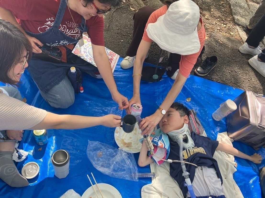 医療ケア児親子と、初めまして同士のボラスタさんみんなごちゃまぜで昼食&乾杯しました。