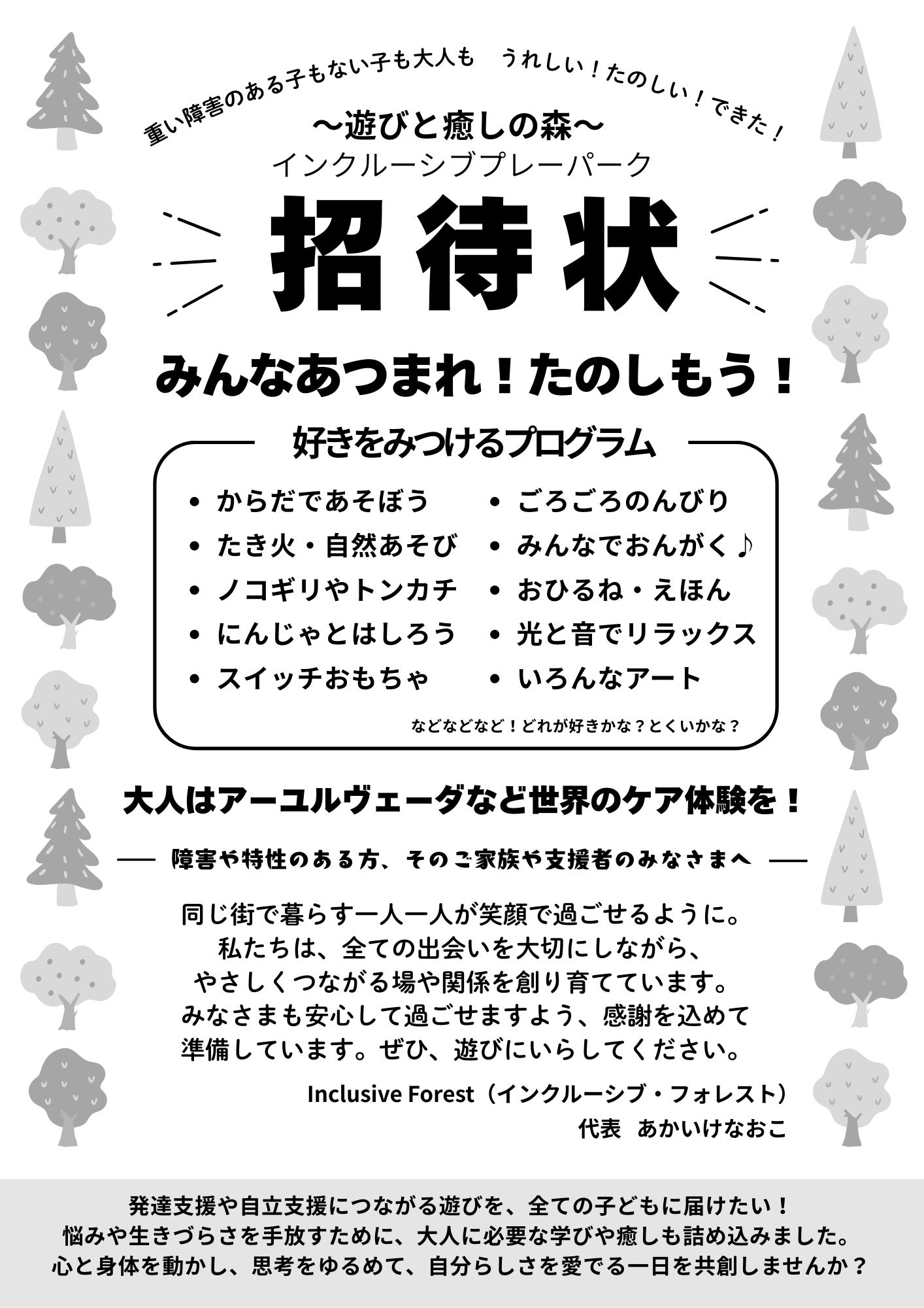 『遊びと癒しの森』招待状もぜひお目通し頂けると幸いです。