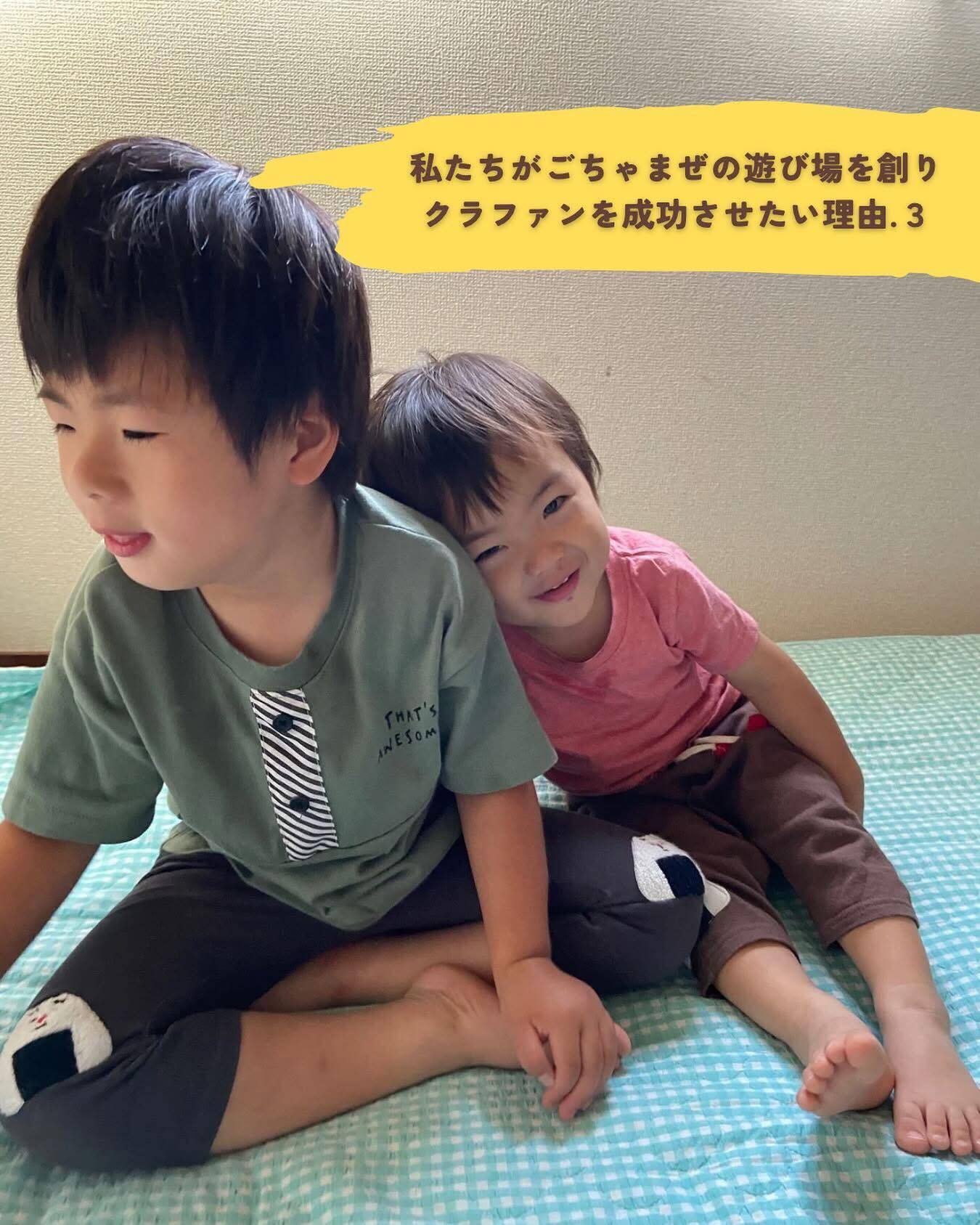 かつての私は、自分一人で社会とつながろうとしていました。知ってほしい。理解してほしい。でも、想いは届かずすれ違うばかり。たくさん傷つけて、自分も傷ついて。だからこそ、学び直し、言葉を磨きました。社会や古い慣習に立ち向かおうと必死でまるで左脳だけで戦っているような日々。でも。挑戦を重ね、失敗をくり返す中で、「それだけでは、人の心は動かない」当たり前のことにやっと、気付いたのです。そこから私は、改めて自分の心と向き合い始めました。自分を癒し、本当の自分を取り戻す。そのために、セルフケアを続けました。*そうしているうちに「これは、自分一人の力じゃない」と感じることが増えて行きました。重度の障害をもつ長男と、健常の次男。二人が楽しそうに遊び、笑っている。同じ空間で、ただそこにいるだけで、素敵な人たちが次々と集まってくる。気づきをもらった、癒された、という嬉しい言葉も次々に届くようになって。それはまるで、子どもたちが“磁場”となり、私の周りの世界をやさしく包み込みながら、少しずつ動かしているようでした。この子たちは、“渦の中心”なんだ。私の役割は、この子たちの力を借りて、いろんな人を巻き込むことなんだ。そう気付いた時、私はもっともっと、素敵なヒトコトモノを繋いでいこう。化学反応を起こしていこう。価値転換を届けていこう。そう覚悟を決めました。それからの私は、不安を安心に変えていくため、新しい豊かな未来を創るため、これまでとは真逆の選択と決断を続けて来ました。そして今。私の子育てや場づくりを面白がり、応援してくれる人がすごい勢いで増えてきています。ああ、私の願いは、叶っていたんだ。だから今、こんなに幸せなんだ。自然や神様や仏様、、、目に見えないたくさんの存在さえも「一緒にやろう」「うまくいくよ」と背中を押してくれているような感覚。「私一人の力じゃない。」「周りのみんなの力がすごい。」「その力がどんどん集まってくるから、これからもっとすごいことになる。」だからこそ、この遊び場を、必要としてくれる誰かに届けたい。一緒に語り、休み、遊び、一緒に創り育てていきたい。そのためのクラファンは5/20まで。この想いと取り組みを、一人でも多く想いのある方にお届けできるようにどうかあなたの力を貸してください