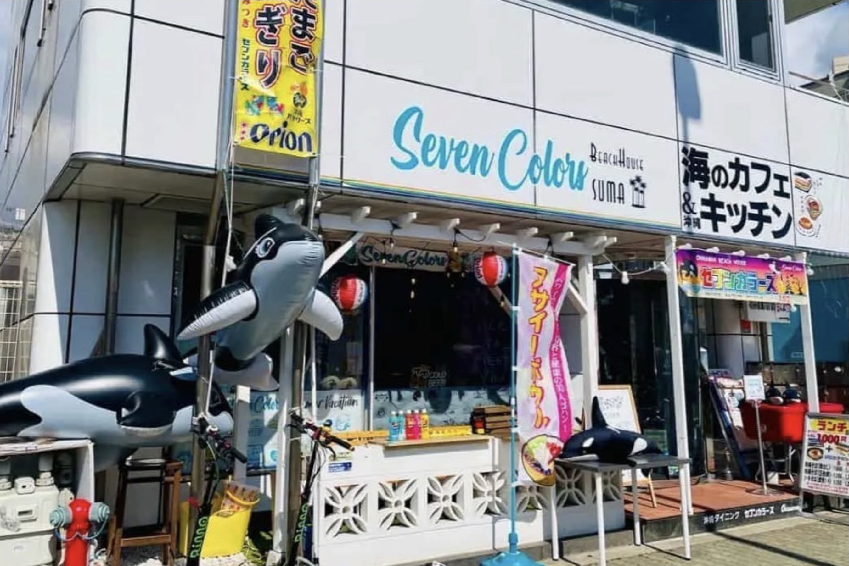 沖縄ダイニングセブンカラーズは兵庫県須磨区にある神戸須磨シーワールドの道向かいにある飲食店で、その名の通り、沖縄名物のポークたまごおにぎりや沖縄そばを楽しめるお店です。