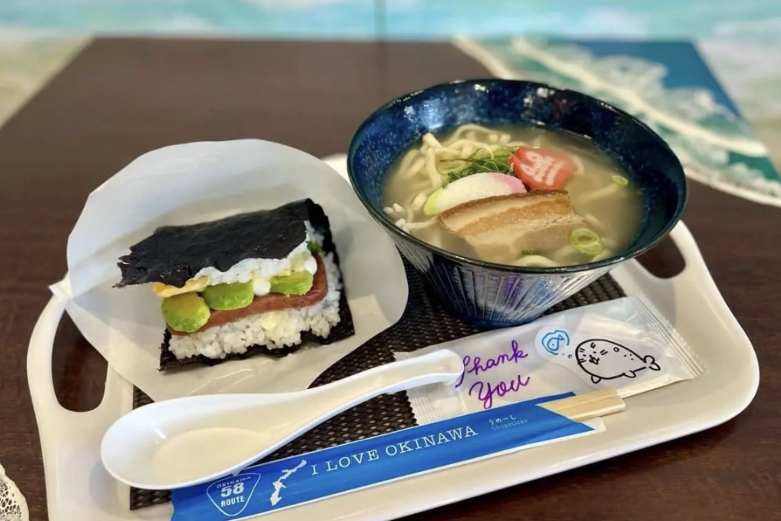 『三枚肉いり沖縄そばとポーク卵おにぎり(明太子)』