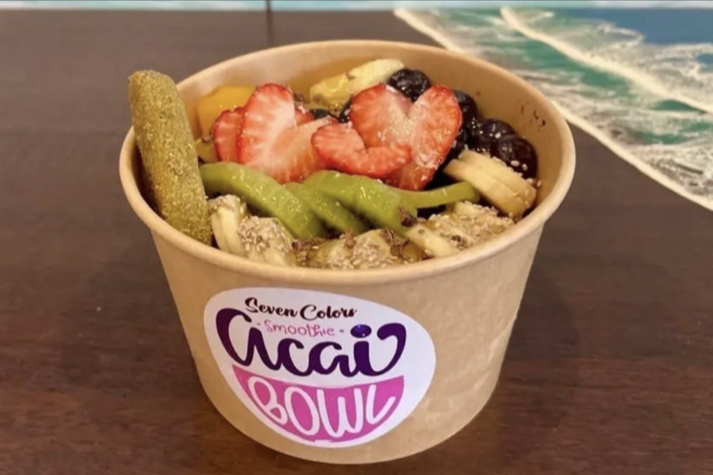 アサイーを使った冷たいスムージー状のベースに果物やグラノーラを盛った栄養満点のスイーツ!