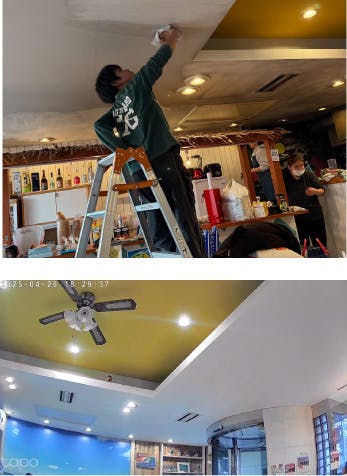 天井は見違えるように明るくなり、ススの匂いもほとんど消え、まるで新しく生まれ変わったかのようでした。