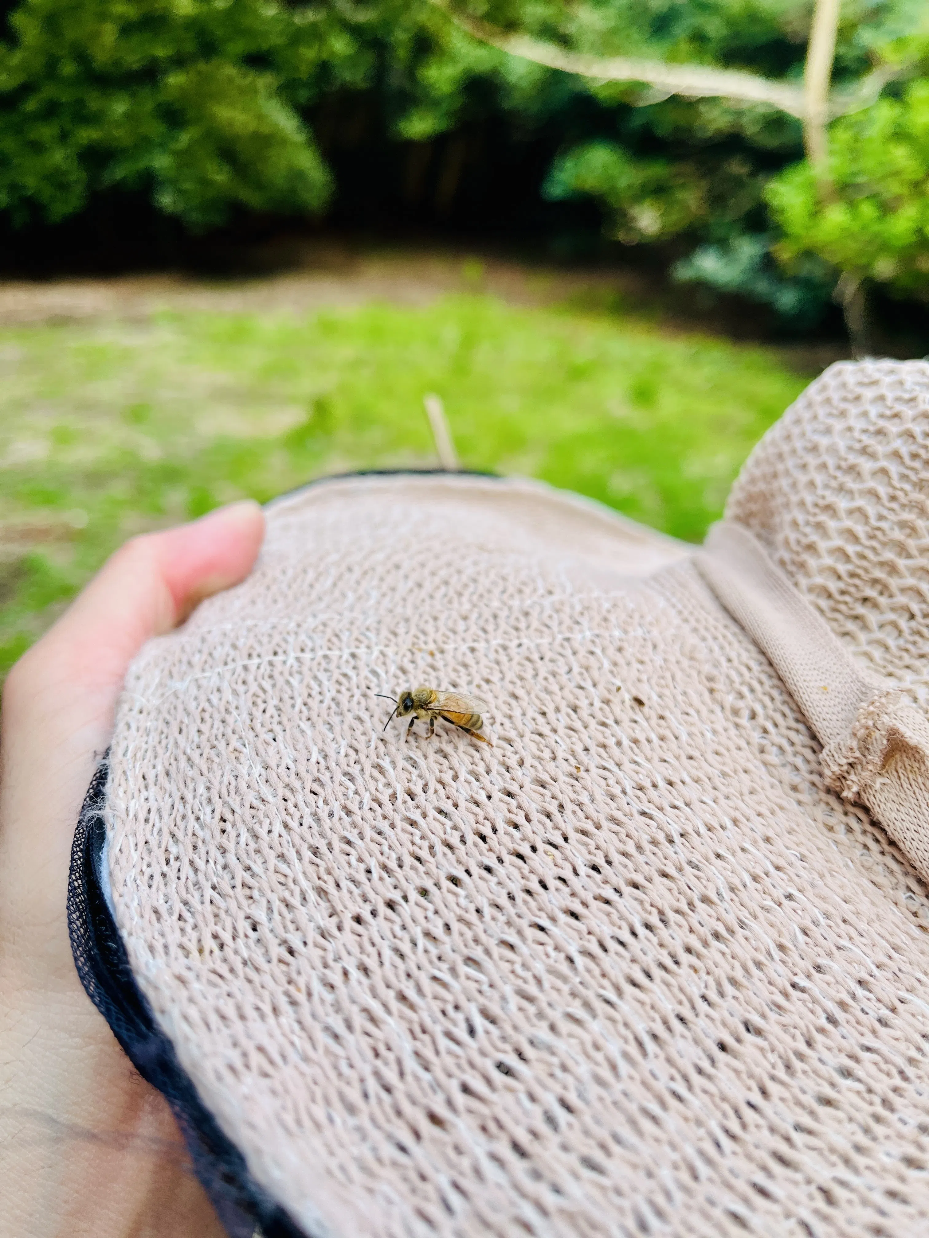 本日の1枚は、帽子の上で一息つく1匹の働き蜂。