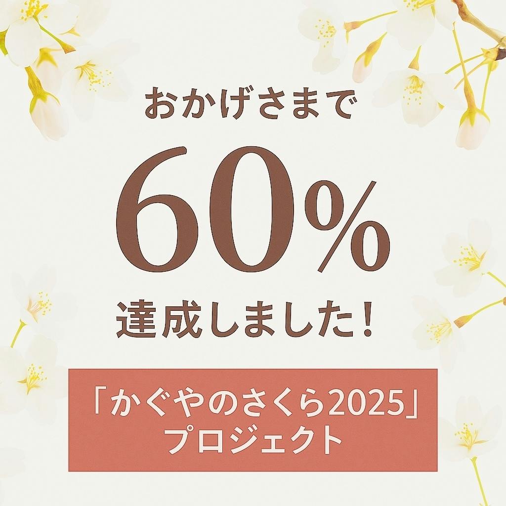 皆さま、いつも応援ありがとうございます!「かぐやのさくら2025」プロジェクトも、いよいよ残り【あと14日】となりました。そしてご支援総額が【60%】を突破しました!桜が咲き終わり、採蜜も終えつつあり、そろそろ次の工程へと進むこの季節。“春の想い”をギュッと詰め込んだ1本をお届けするためにも、あともうひと踏ん張りです。母の日が過ぎても、  ○特別なギフトに  ○ご自身へのご褒美に  ○季節の贈り物として「かぐやのさくら2025」が、誰かの心にそっと寄り添えたら嬉しいです。最後の2週間、どうか引き続き見守っていただけたら幸いです。ご支援・シェア・応援、どうぞよろしくお願いします!▼プロジェクトページはこちら  https://camp-fire.jp/projects/841298/view
