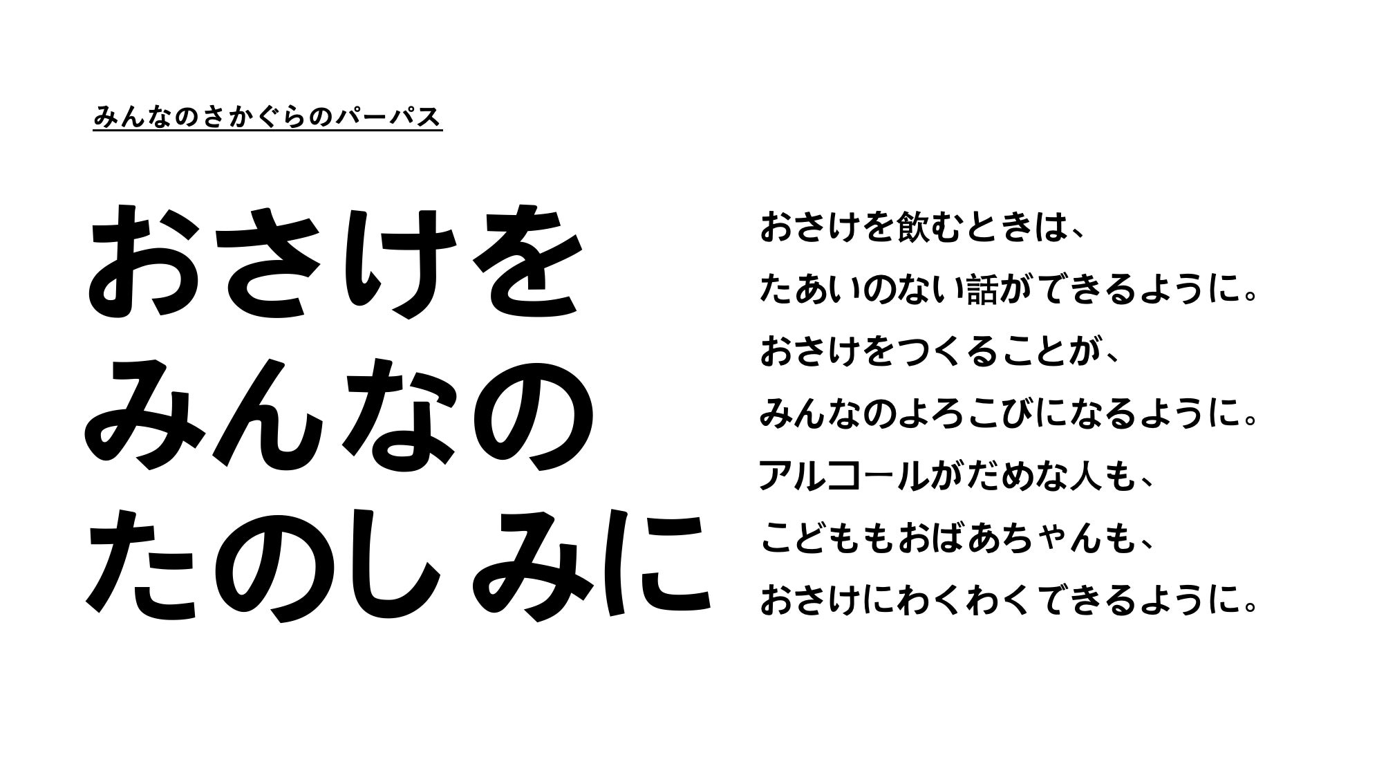 わたしたちが「みんなのさかぐら」で実現したいことは、「おさけをみんなのたのしみに」することです。