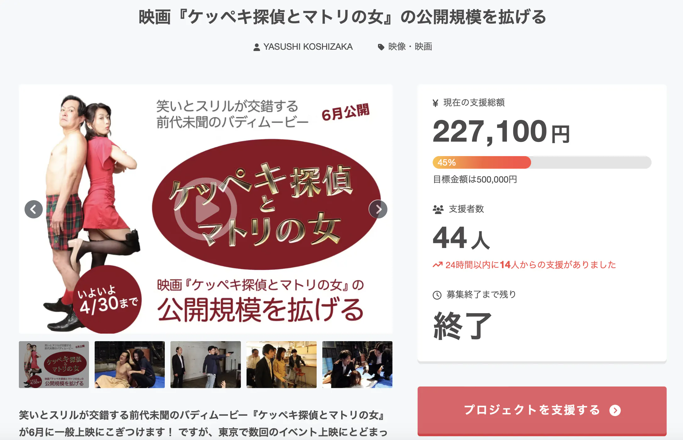 この度は「ケッペキ探偵とマトリの女」CFにたくさんのご支援をいただきありがとうございました。あらためて御礼申し上げます。