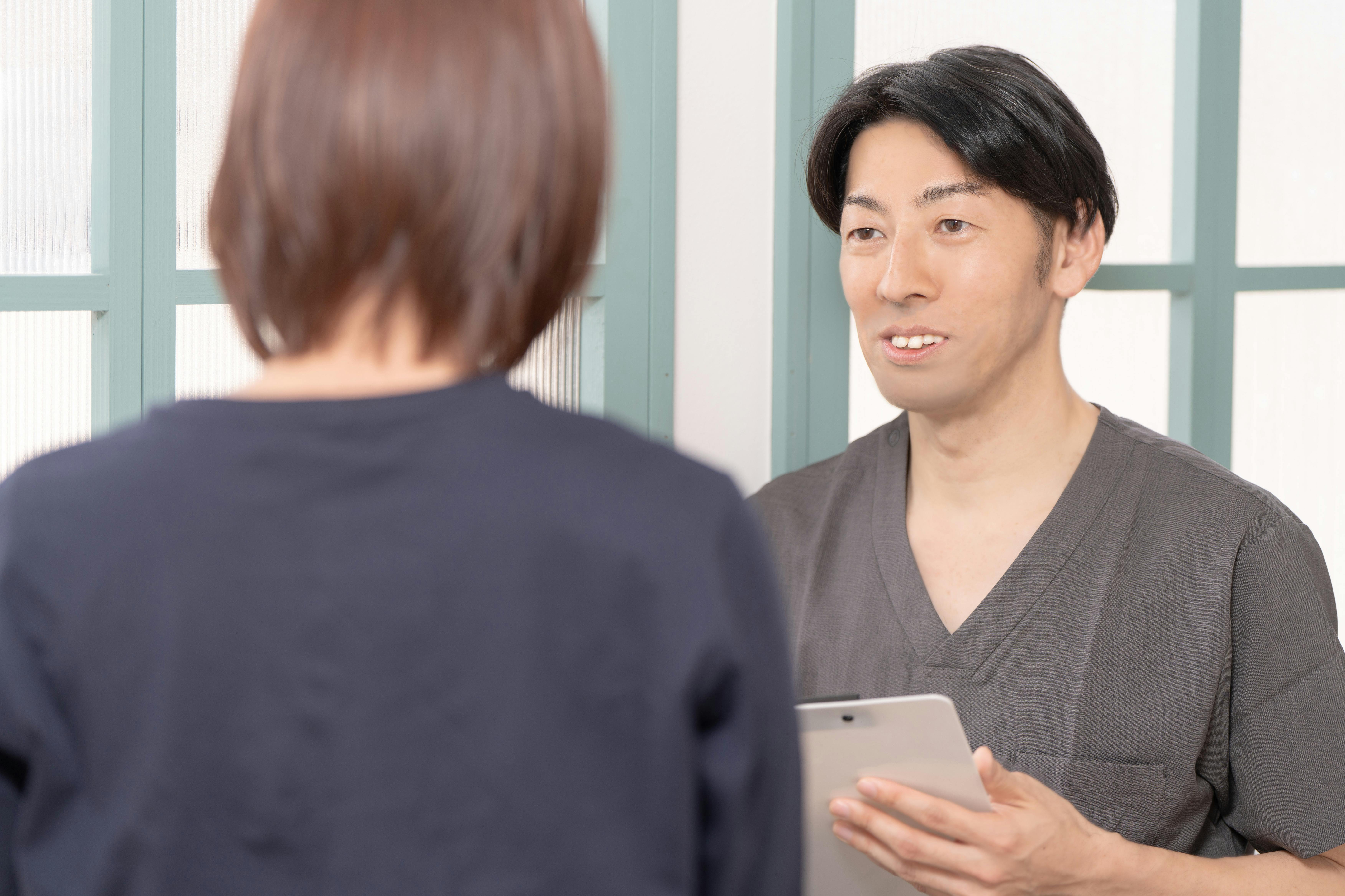 治療方針の共有:その日の目標と1ヶ月後の目標をお伝えし、ご納得いただいてから施術を始めます。