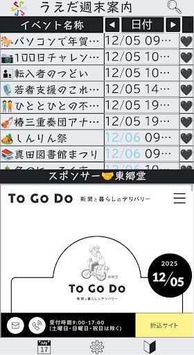 2025/11/10 10:00めっきり寒くなりましたね。如何お過ごしでしょうか。先日ありがたい事にラジオ番組のゲストに呼んで頂きました。酒が取り持つ縁と言いますか、「HanaSake」という日本酒を蔵元の方に紹介して頂きながら呑む会の席で地酒屋宮島の宮島国彦さんからゲスト出演のお誘いを頂いて、先日FMとうみのスタジオに行って収録をしてきました。出演したのは『地酒屋くんちゃんの「吞んでるか~い」』で、二週に渡って呼んで頂きました。一周目の放送日は11月14日(金)の午後7時~7時半で、再放送が11月16日(日)の午後6時~6時半。こちらでは主に週末案内の話をさせて頂きました。二周目の放送日は11月21日(金)の午後7時~7時半で、再放送が11月23日(日)の午後6時~6時半。こちらでは主に地誌研究について熱く語ってます。はれラジアプリからも聴けるようです。収録は楽しかったのですが、話したい内容が多すぎて内容を詰め込みすぎてしまったのが反省点です。お聞き辛い点は平にご容赦を。宮島さんありがとうございました!(クラファン時にはスポンサーにもなって頂きました。重ねて御礼を!)あ、そうそう二週目のリクエスト曲にはささきりょうたさんの曲を選ばせて頂きました。とても好きな曲なので是非聞いてみてください!~~~~~~~~~~~~~~~~~~~~~~~~~~~ここで週末案内も公開から約半年経ちましたので、ユーザーさんから届いた声をご紹介します(ラジオ番組風 「こんなにイベントあったの?!」(一番多い反応) 「子供向けイベント情報助かる」(ママさん) 「近所だからサントミューゼ情報が便利」 「マルシェ巡りをしているのでありがたい」 「チラシ初めて見た」(東御市在住者の方) 「イベントが多すぎて客が分散してるのでは?」(出店者の方) 「ホテルに置いて貰ったら?」(旅行関係者の方) 「週末案内の人だ!と思って声を掛けた」(マルシェにて) 「平日のイベントも増えるといいな」 「この前イベント登録してみましたよ」(企画者の方) 「また操作説明会やってほしい」(クラファン支援者の方)最近全く面識が無い方が週末案内使ってるの見て思わず声を掛けてしまいました。それくらい自分が作ったものが役に立ってるのを見るのは嬉しいものです。さて、ユーザーさんからの声に応える形で下記対応を行う事にしました。①【配布エリア拡大】 まずはチラシ配布エリアを隣町まで広げる事にしました。具体的には東御市・青木村・坂城町・長和町です。公共施設を中心に設置交渉を進めています。 早速東御は田中駅周辺の施設数カ所、長和町も4箇所ほど置いて頂ける事になりました。 最新の設置場所リストはこちら。とうとう100箇所を越えました。②【宿泊施設への配布計画】 今まで観光系の施設にはチラシを持って行っていたのですが、これからは宿泊施設の方にも置いて頂けるよう段取りをしています。別所の旅館組合に関しては応援コメントも頂いた山崎愛さんのご協力で何箇所か配布が決まり、上田駅周辺のホテルには元地域おこし協力隊員だった佐藤克哉さんの協力を得ることができました。 また最も宿泊施設の多い菅平にはこちらも応援コメントを頂いた大久保寿幸さんと一緒に旅館組合の総会にお邪魔させて頂ける事になりました。プレゼン頑張ってきます。 それ以外のゲストハウスや民宿、一棟貸しの宿については個別に連絡を取ったりしています。 ③【操作説明会開催】 久しぶりに説明会を開催する事にしました。日程は11月19日(水)の 午後6時~8時です。場所はいつもと同じまちなかキャンパスうえだになります。ご参加お待ちしております。お申し込みはこちら。④【マルシェマッチングの構想について】 まだまだ構想段階なので書くか迷ったんですが、いずれはやってみたいと考えているので一応アイデアの共有だけでもと。 この一年で多くのマルシェ企画者・出店者・出演者・施設管理者の方達と知り合う事ができ、各々悩みを抱えていらっしゃるのもお聞きしているので、それを(ある程度)解消する為の枠組みとして、企画者・施設・出店者・出演者を繋ぐサービスを考えています。 現状では企画者の方が日程を場所を決め、出店者を募り、出演者に依頼して、という流れでイベントというものが出来上がっているんですが、ここを事前登録制にしてオファーなどを出しやすくする仕組みができないかなと妄想してる段階です。 まぁ実際には信頼をベースに繋がっているケースが多いと思うので、この枠組みで全部賄えるとは思って無いですけれど、どこにどんな施設があり、どういう団体があって、どういうイベントが企画されていて、どういう出店者がいるのか、みたいな情報はみんなで共有した方がいいのではないかなと。 具体的に実装の取り掛かる頃にアドバイスなどご助力をお願いするかと思いますが、ご協力頂ければ幸いです。ではでは、今月はこの辺で。あ、ラジオ聞いて下さいねー もっと見る