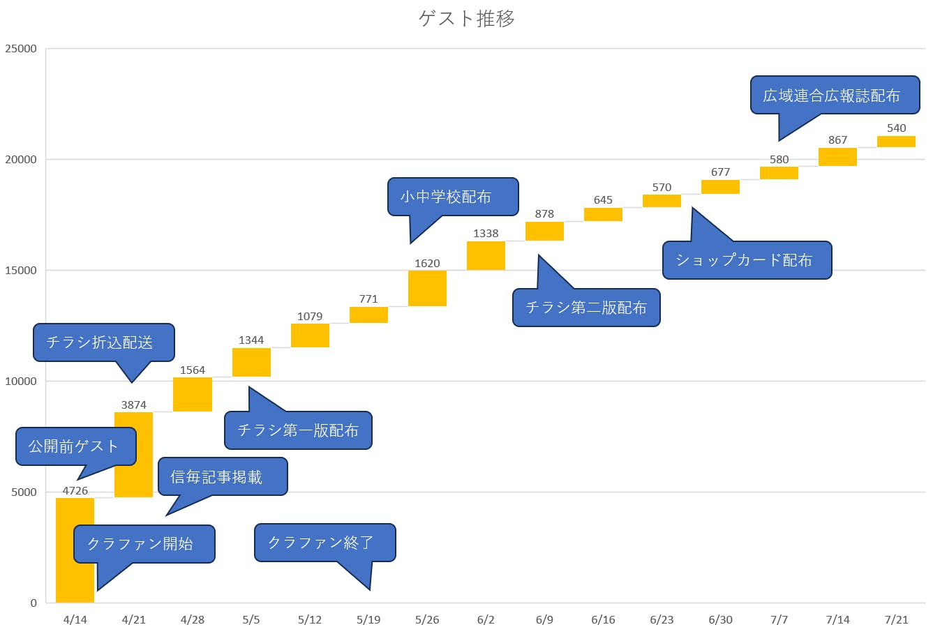 まずはクラファンの目的でもあった利用者の拡大。ゲストアカウントの推移です。
