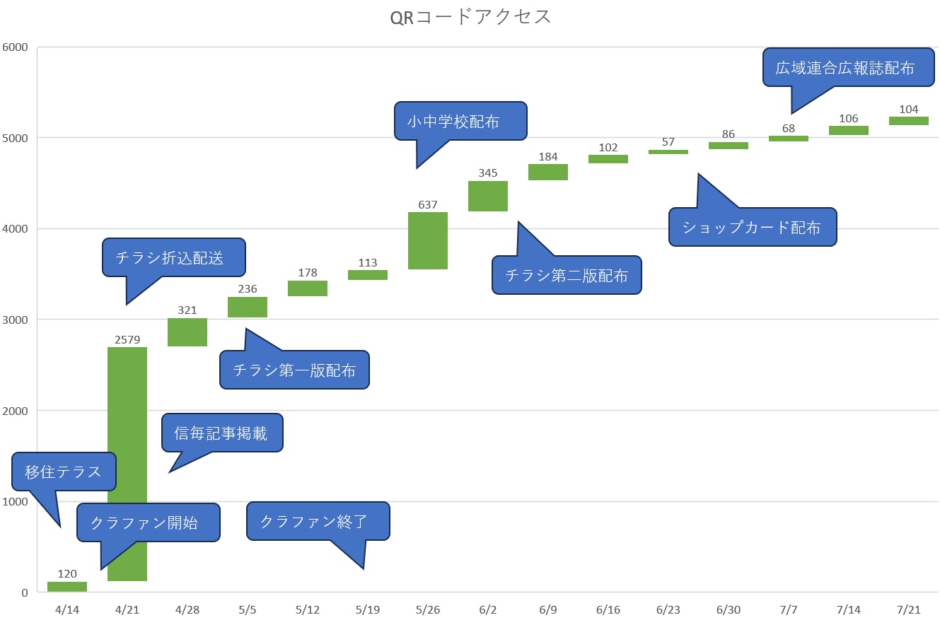 5月末に行った小中学校への配布は学校によって配布時期がずれたのか6月中頃まで伸び続けていました。こっちは部数に対しての返り(ゲストアクセス)が最も優秀でした。手続きが結構大変ですが数年ごとにやるのはアリかもしれません。