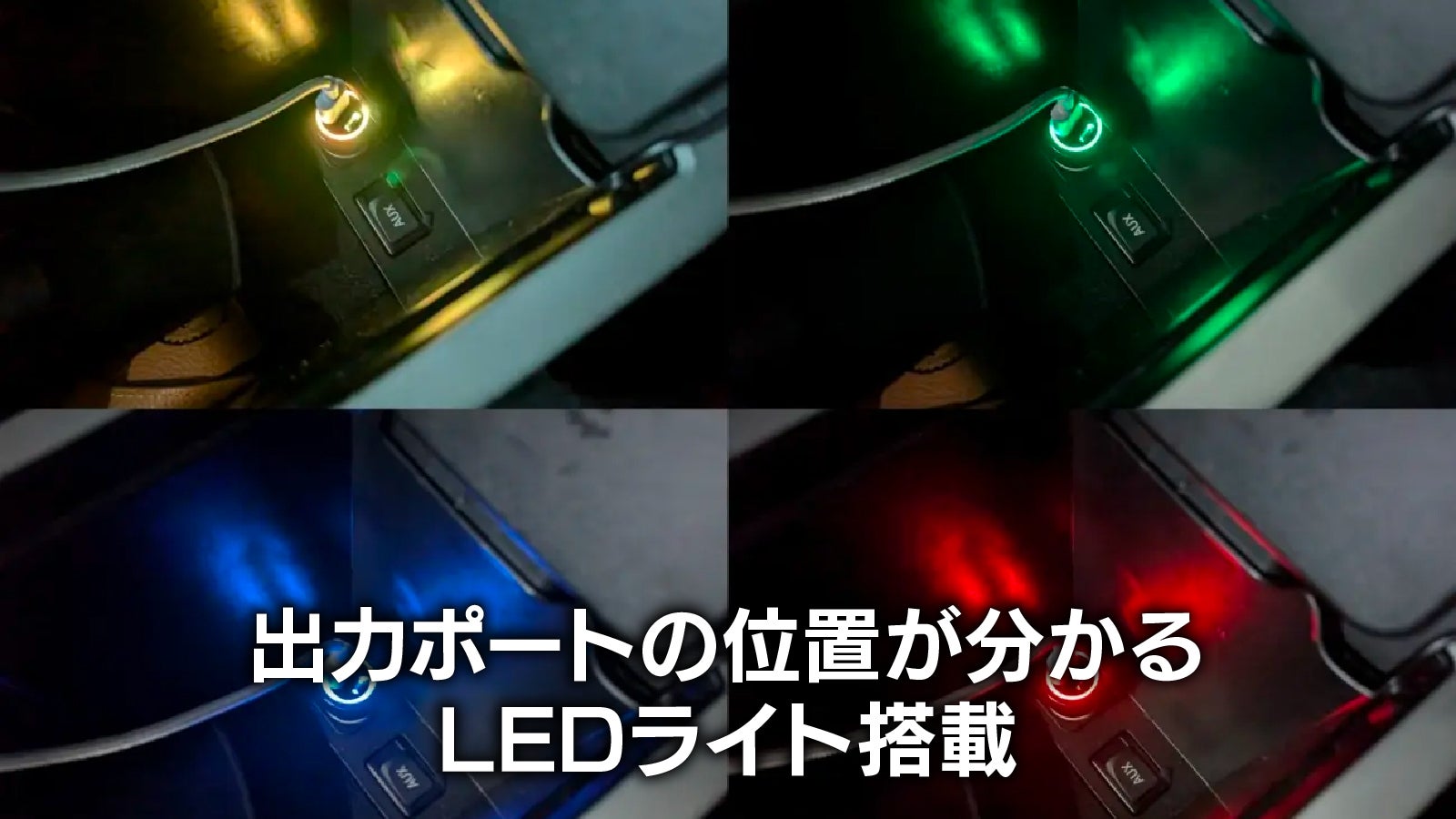 デバイスを急速充電中は不規則に色が変わるので、夜のドライブをお洒落に演出します。
