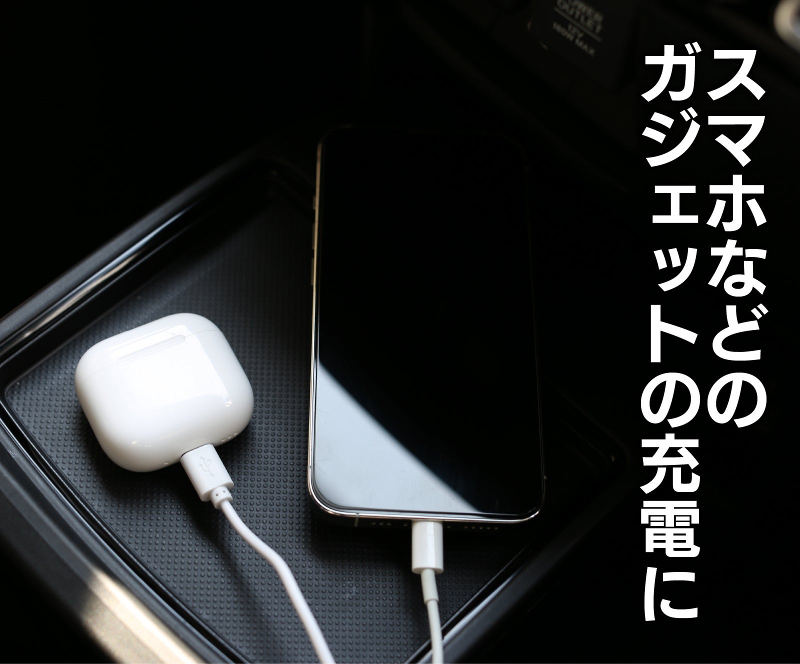 大量の電気が必要なノートPCへ高速充電するPD3.0や、USB-TypeAの4倍もの速さでスマホを充電できるQC3.0にも対応し、スマホやワイヤレスイヤホン程度ならドライブ中に充電完了。